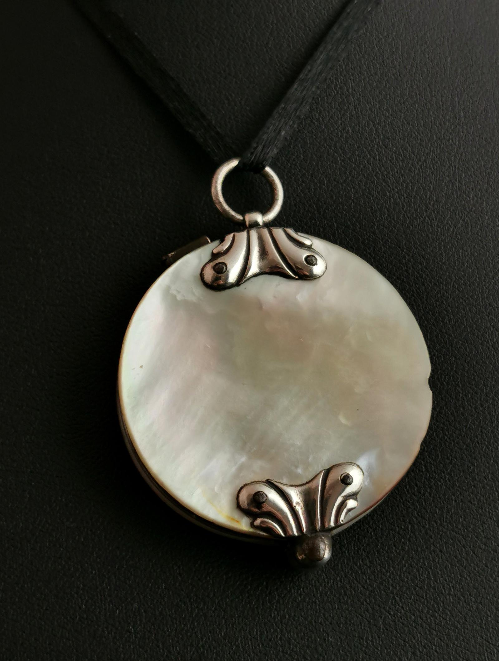 Antique Georgian Quizzing Glass Pendant, Mother of Pearl & Silver