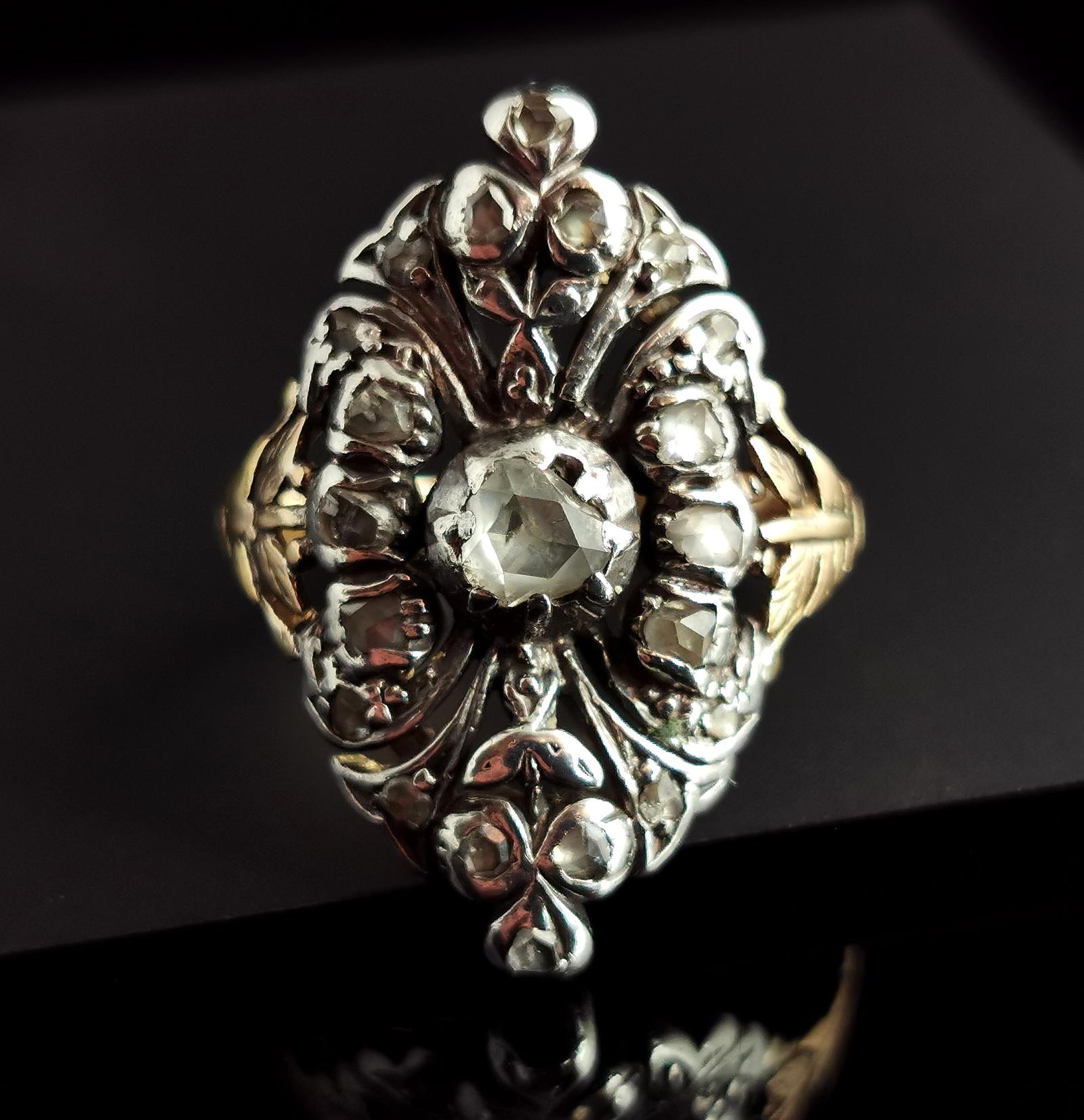 Antique Georgian Rose Cut Diamond Giardinetti Ring, 22ct Gold & Silver
