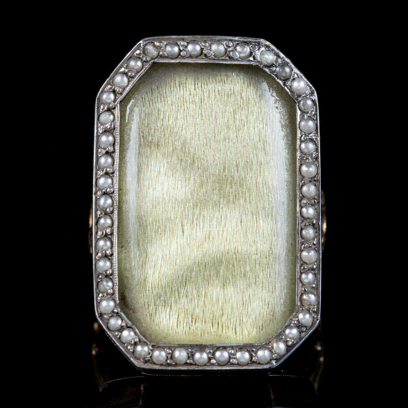 Antique Georgian Silk Pearl Mourning Ring 18ct Gold c.1750