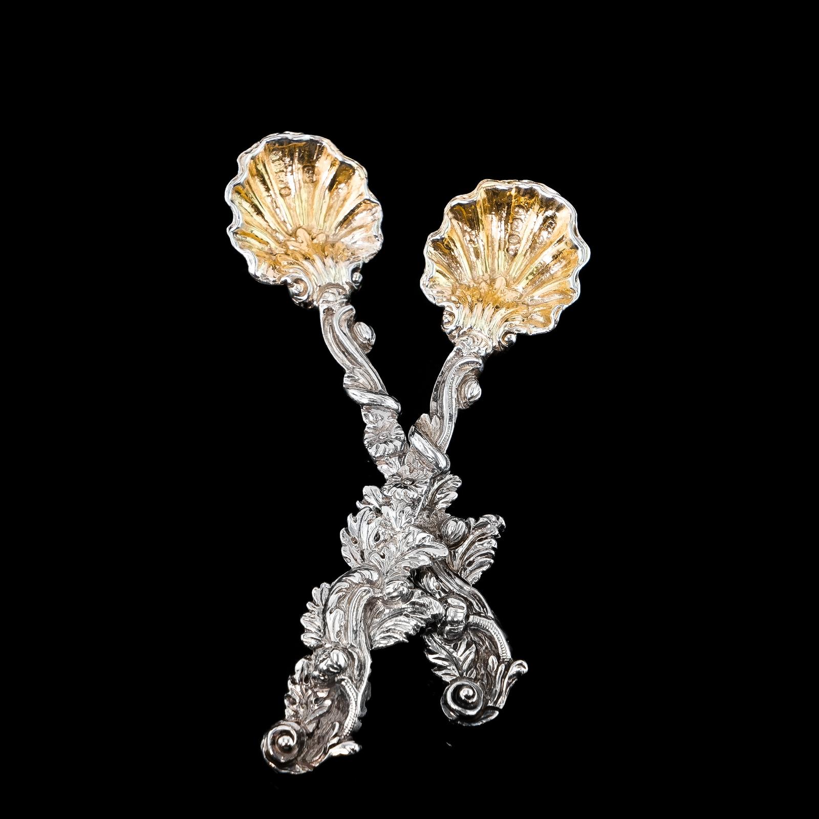 Antique Georgian Silver Salt Spoons Rococo Shell Design - 1824
