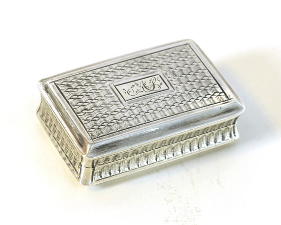Antique Georgian Silver Vinaigrette Box Case George IV Engine Turned 1828