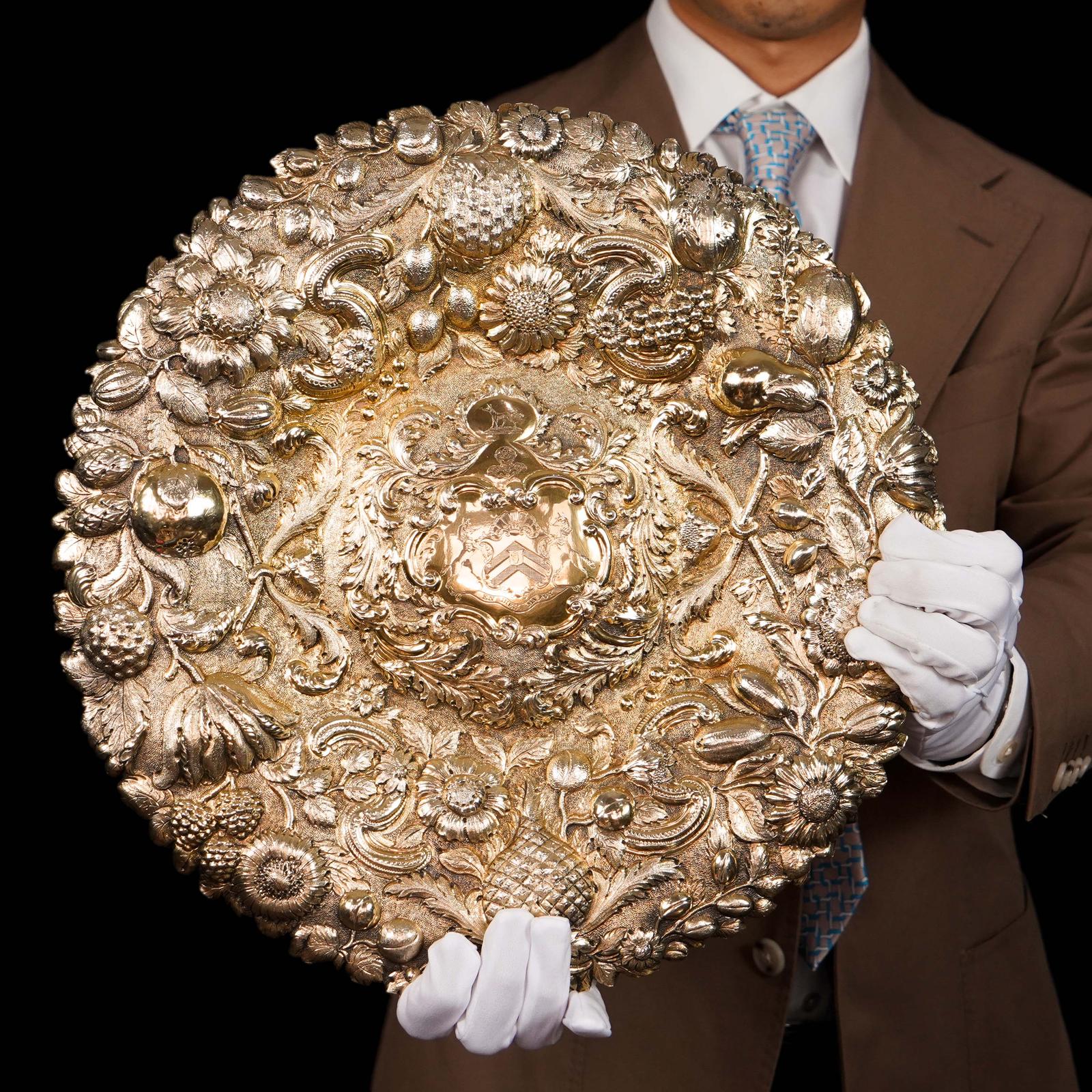 Antique Georgian Solid Silver Gilt Charger / Sideboard Dish Baronet Coat of Arms - London 1809