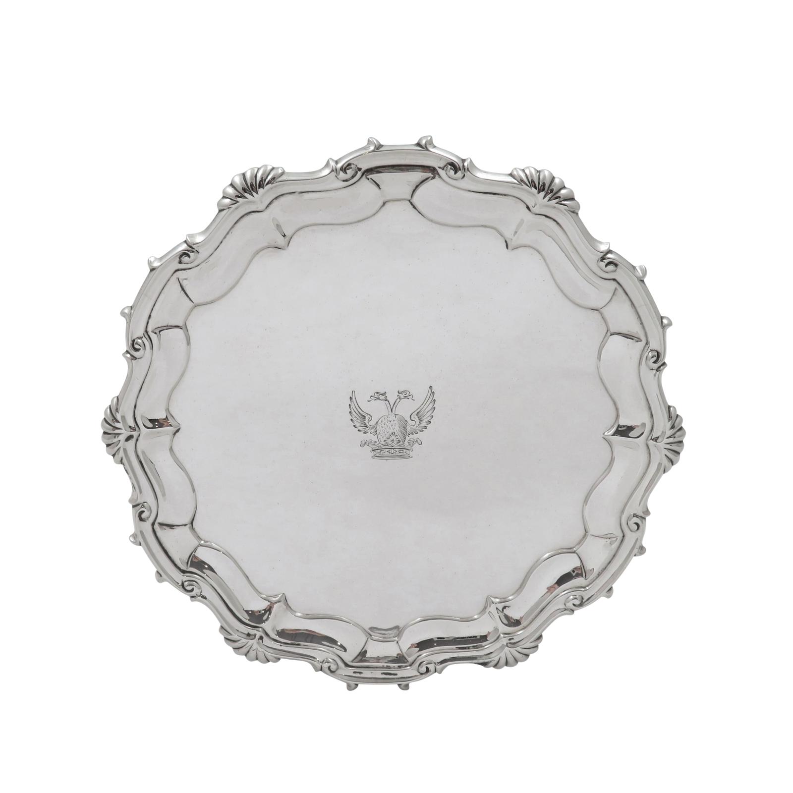 Antique Georgian Sterling Silver 6" Tray with Crest 1758