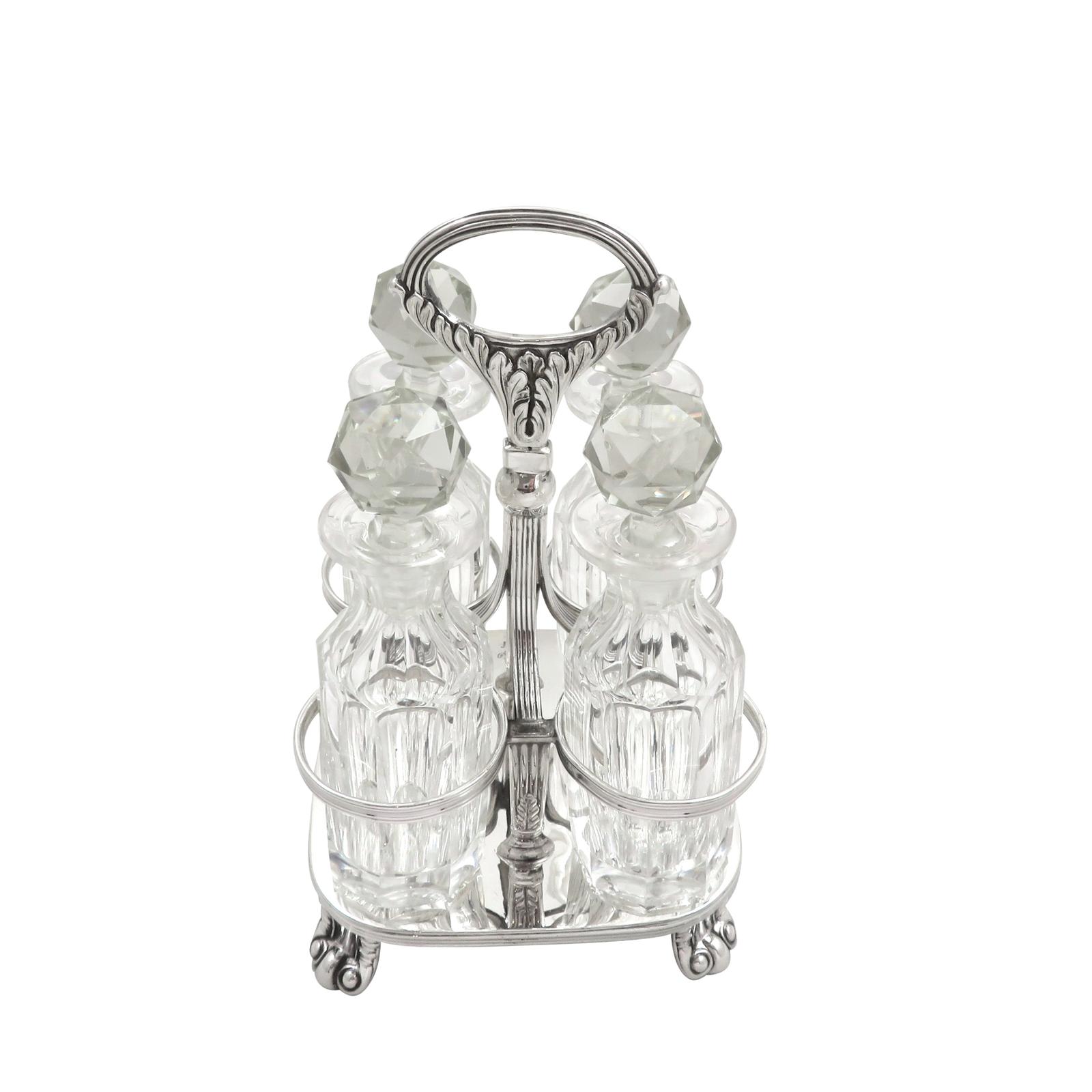 Antique Georgian Sterling Silver & Cut Glass Cruet Set 1812