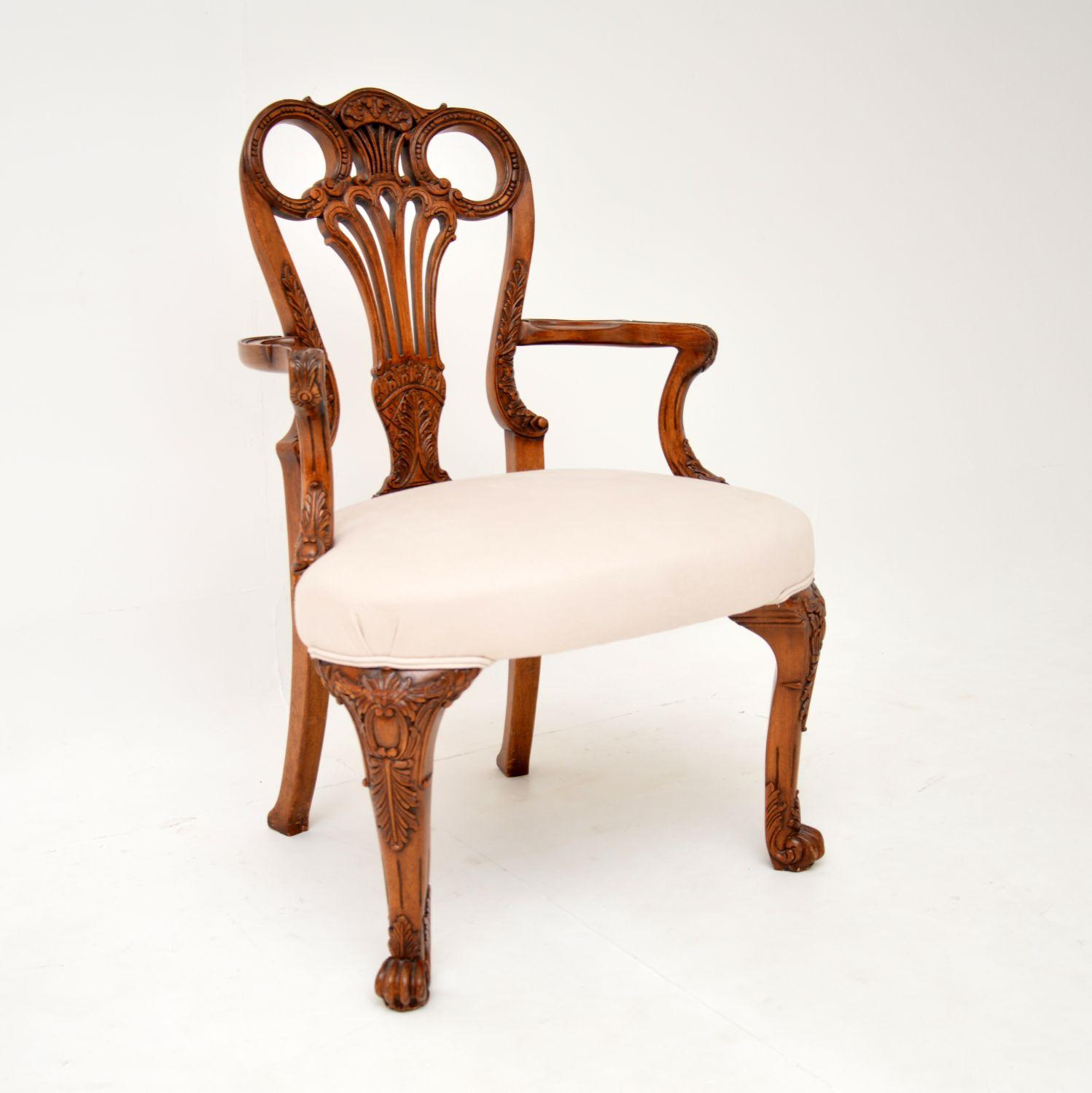 Antique Georgian Style Carved Walnut Armchair (1 of 11)