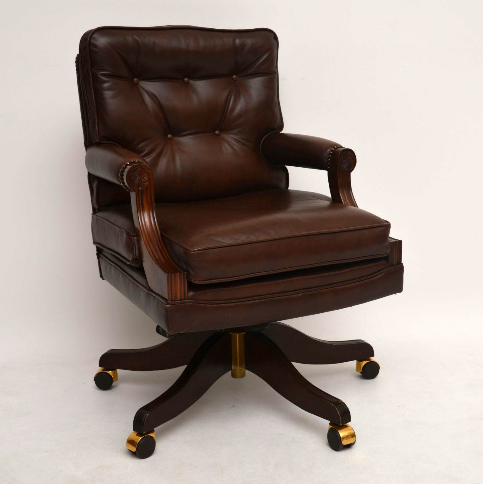 Antique Georgian Style Leather & Mahogany Desk Chair