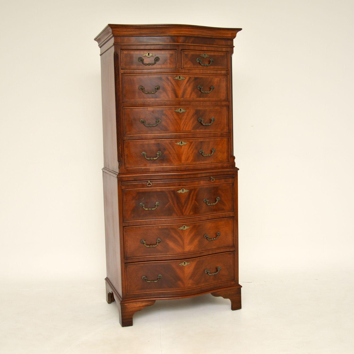 Antique Georgian Style Mahogany Serpentine Fronted Chest on Chest