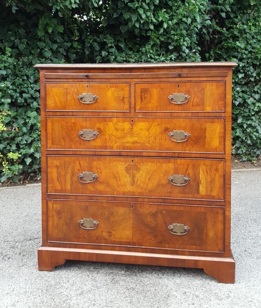 Antique Georgian Style Walnut Chest Of 5 Drawers