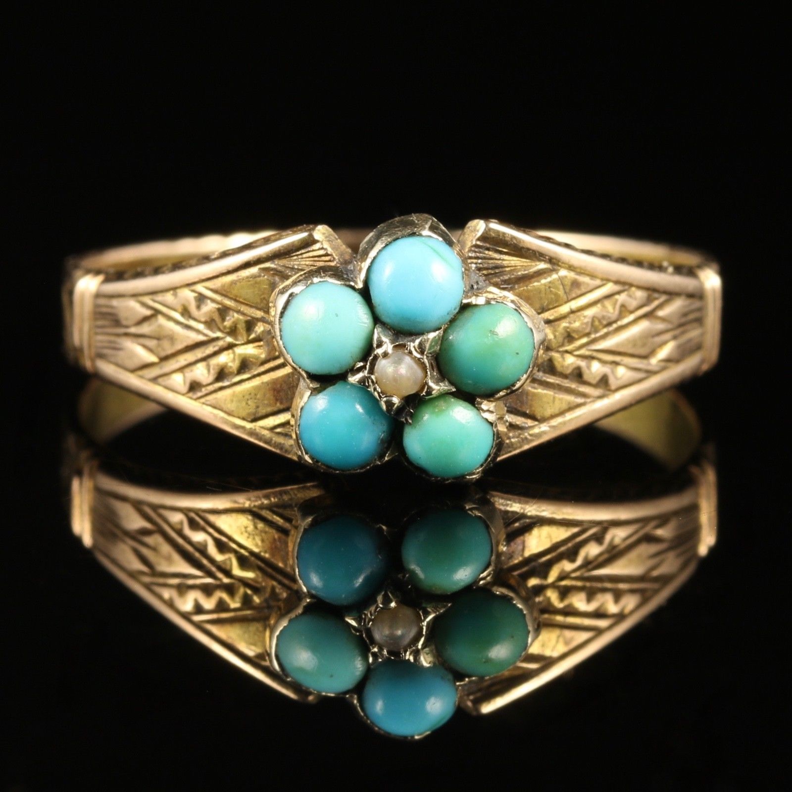 Antique Georgian Turquoise Pearl Ring 18ct Gold c.1800