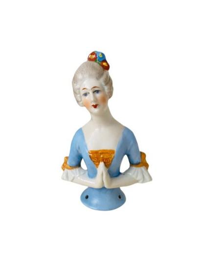 Antique German Porcelain Fasold & Stauch Praying Lady Pin Cushion Half Doll