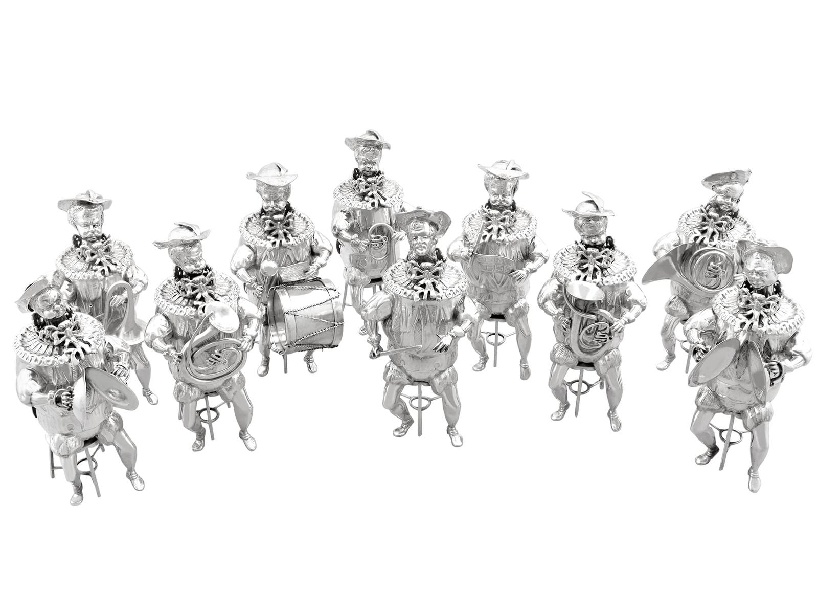 These antique silver musician models/table figures are charming and highly collectible objects, valued for their detailed craftsmanship and playful character. Celebrating both musical artistry and silversmithing skill, they appeal to collectors, musicians and music lovers alike. They make thoughtful gifts for milestone birthdays, retirements or the commemoration of musical achievements.