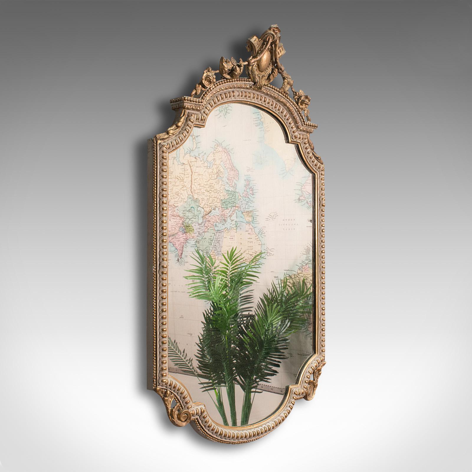 Antique Gesso Wall Mirror, Italian, Giltwood, Glass, Shield, Victorian c.1900