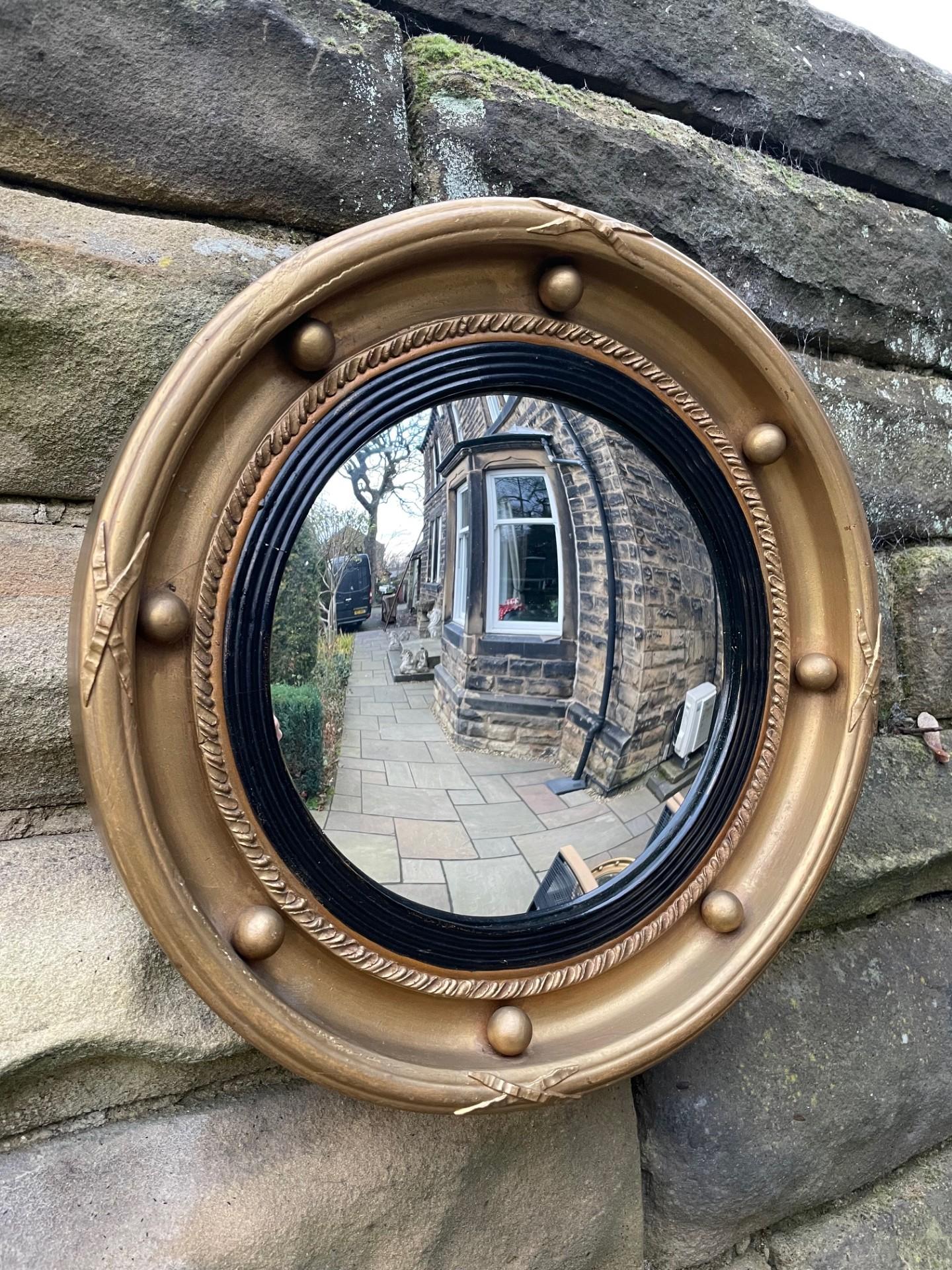 Antique Gilt Convex Wall Mirror Porthole Mirror