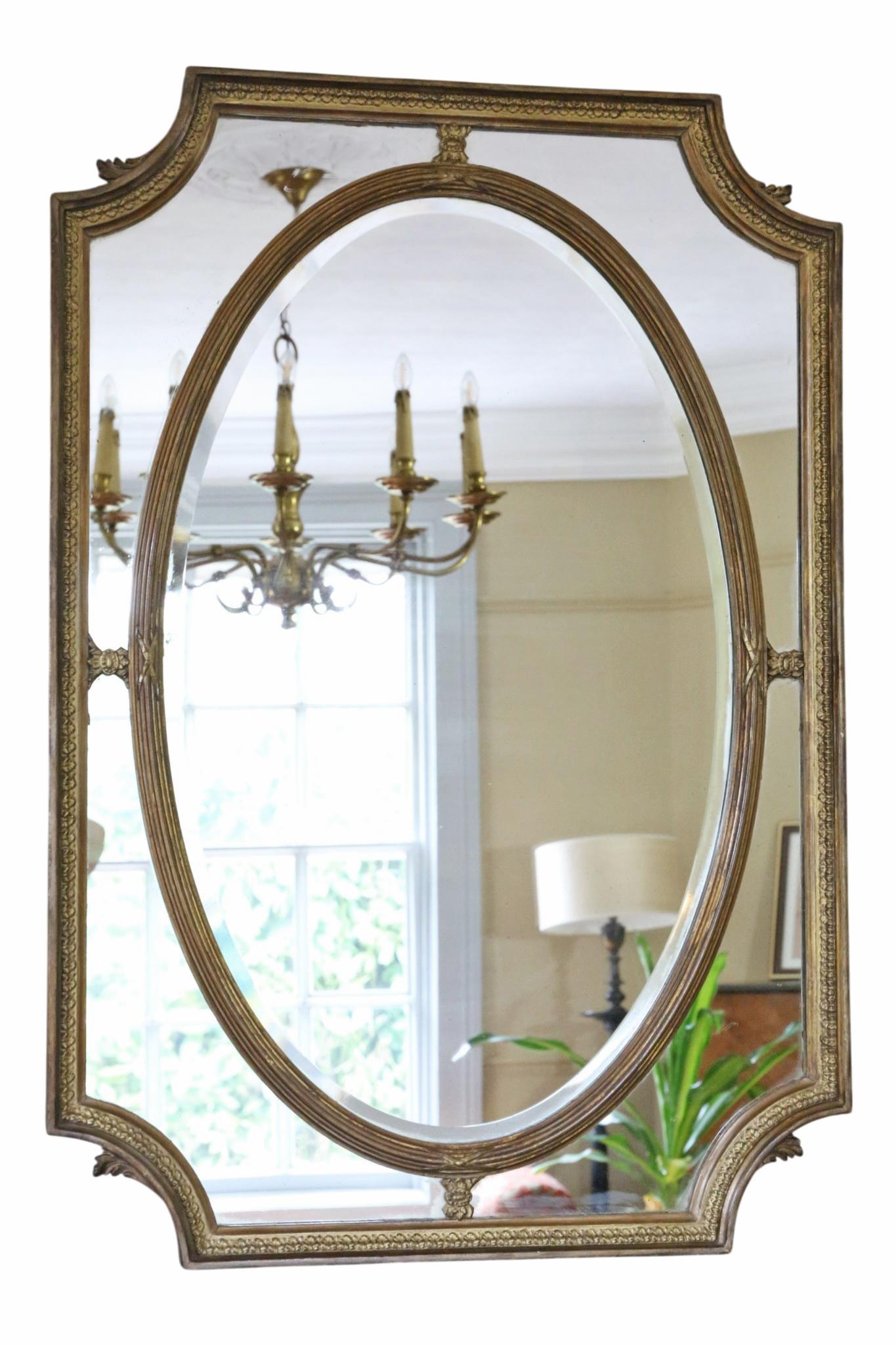 Antique Gilt Cushion Overmantle Wall Mirror with Bevel Edge Glass c.1900
