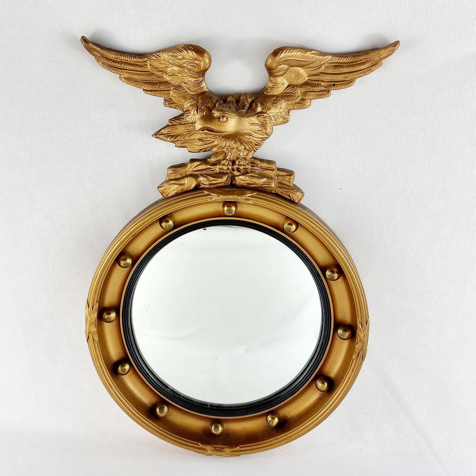 Antique Gilt Framed Convex Mirror with Eagle Finial