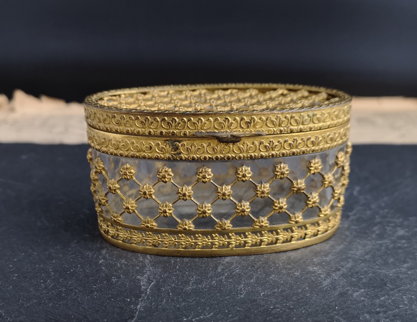 Antique Gilt Jewellery Casket, Glass & Gilt Metal Box