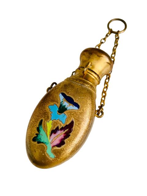 Antique Gilt Metal Enamelled Chatelaine Perfume Scent Bottle c.1880