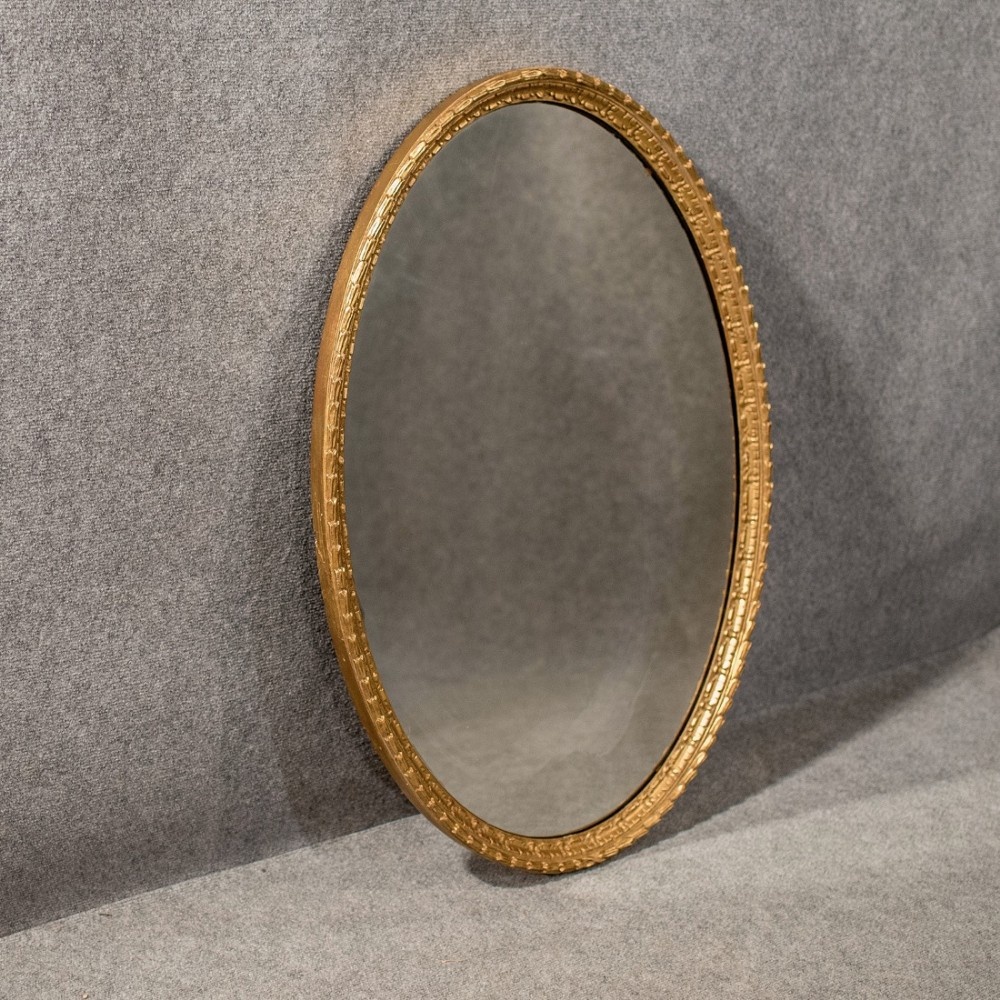 Antique Gilt Wood & Gesso Oval Wall Mirror 3' Over Mantle English Victorian c.1890