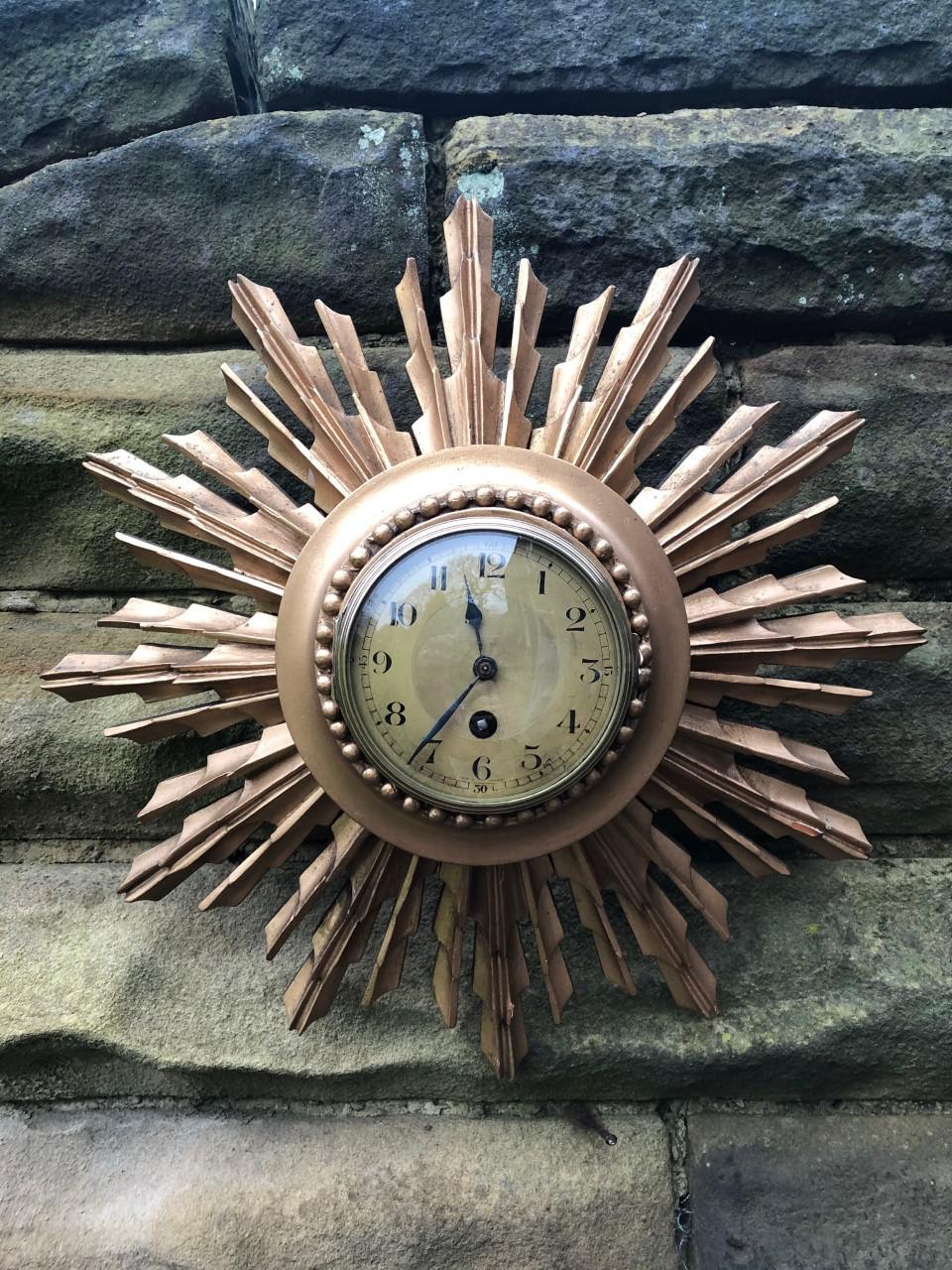Antique Gilt Wood Sunburst Wall Clock