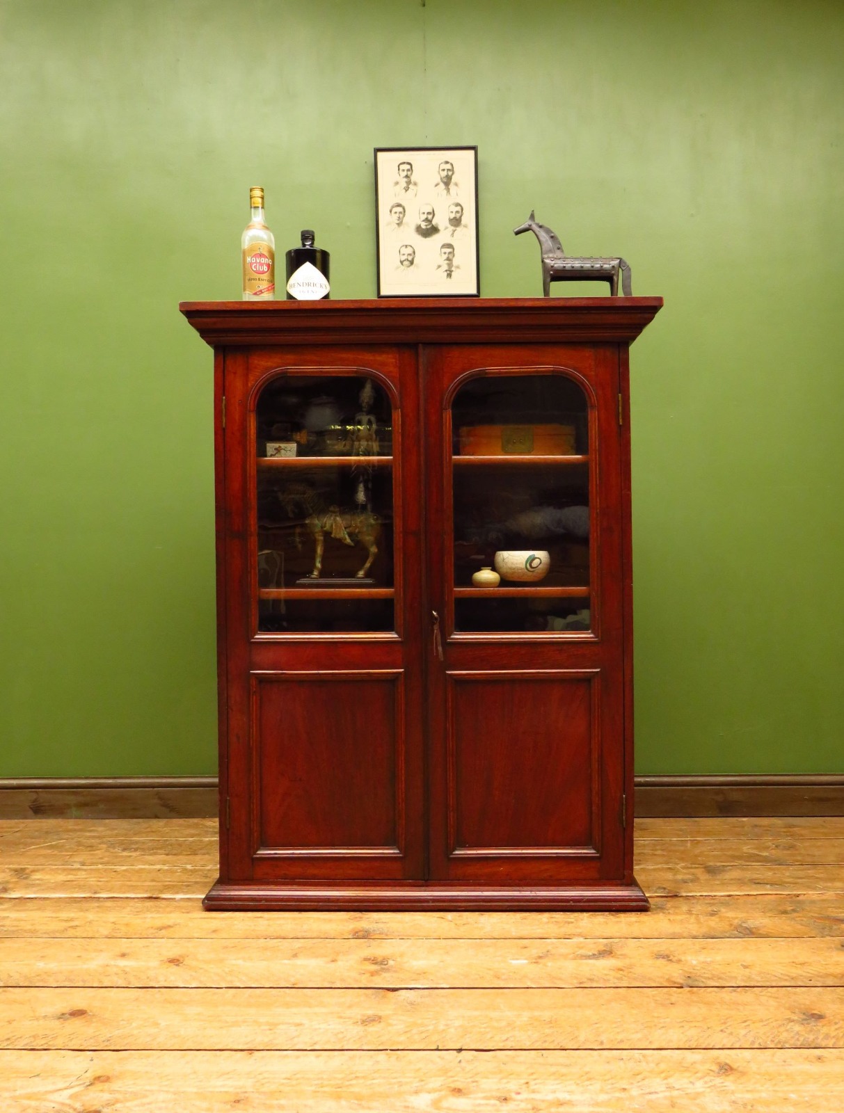 Antique Glazed Book Cabinet Display Cabinet with Adjustable Shelves & Key