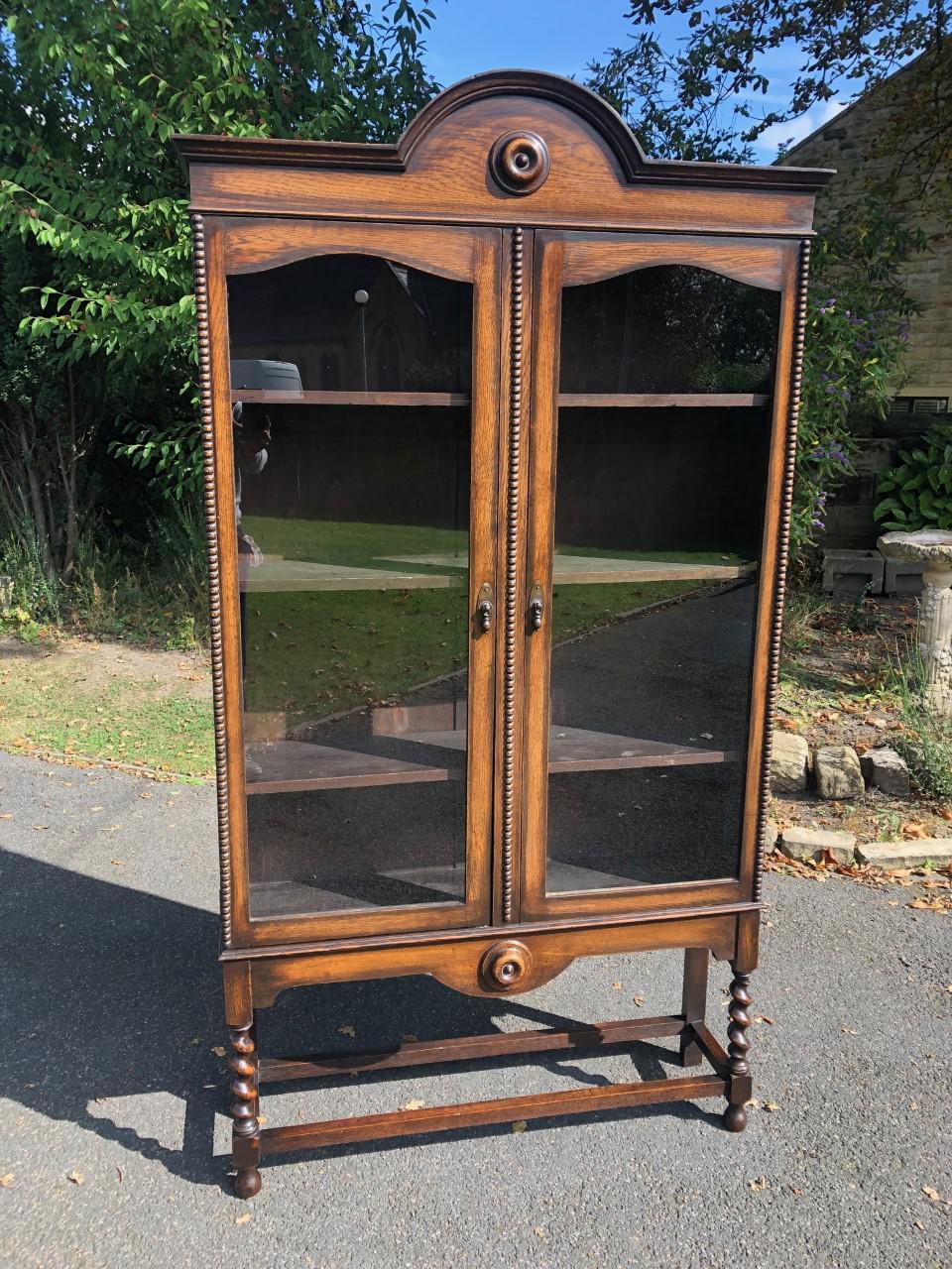 Antique Glazed Oak Barley Twist Bookcase