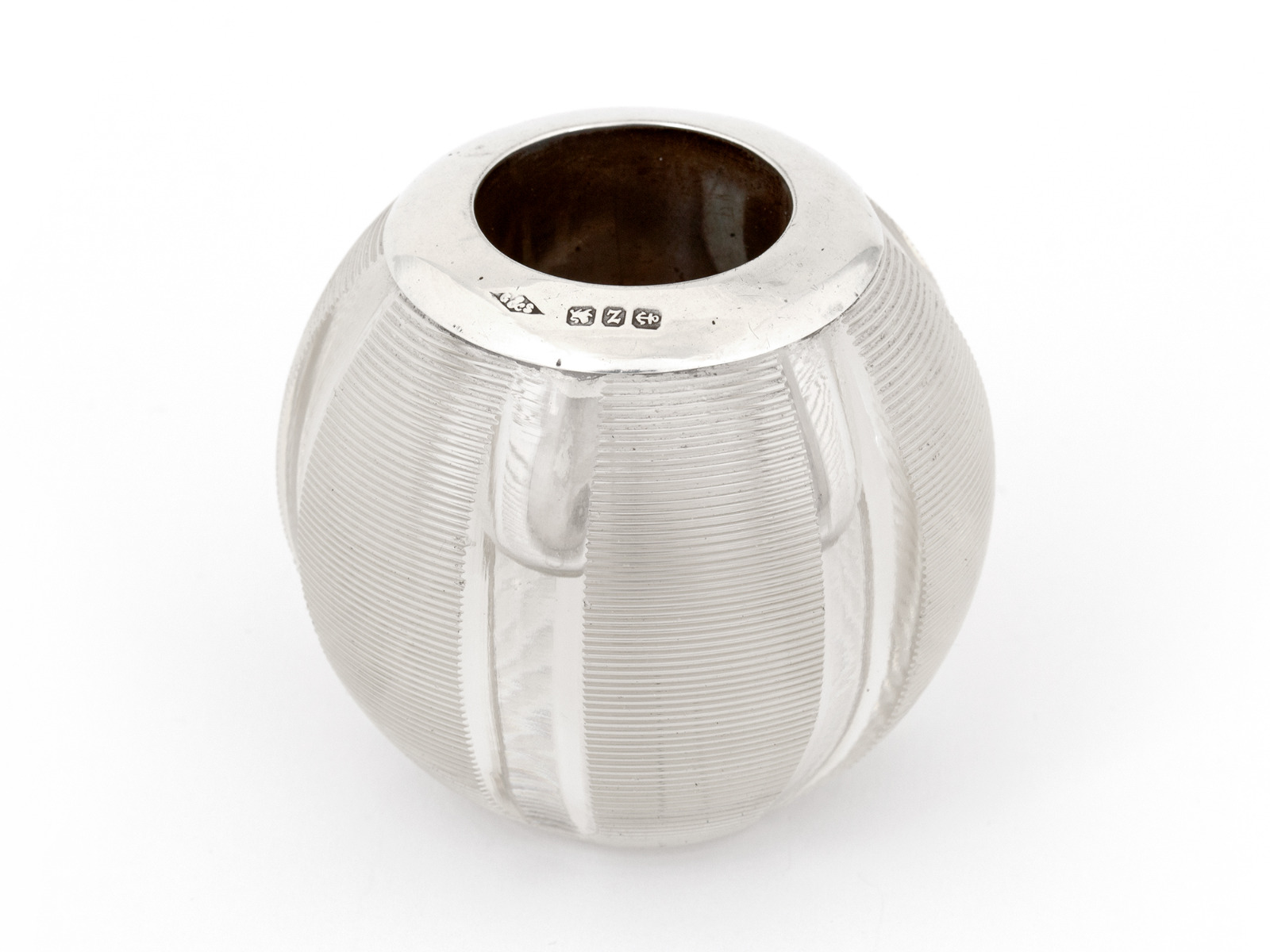 Antique Globe Shape Threaded Glass Match Striker with a Silver Collar (1 of 1)
