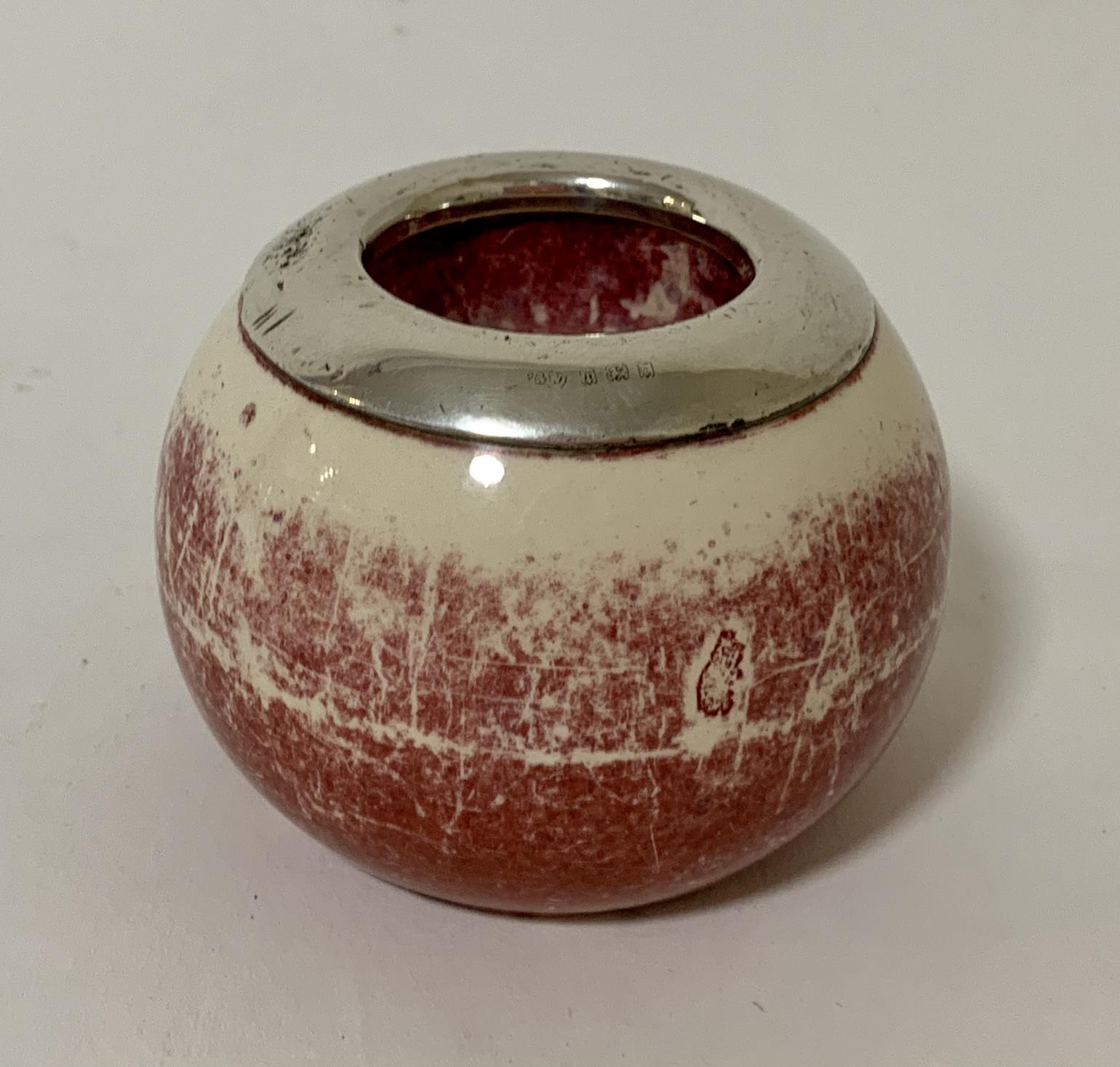 Antique Globular Ceramic Match Strike Holder with Silver Rim (1 of 9)