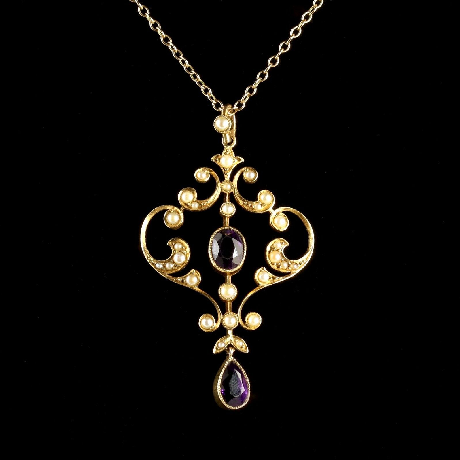 Antique Gold Amethyst Pendant & Chain 15ct Gold