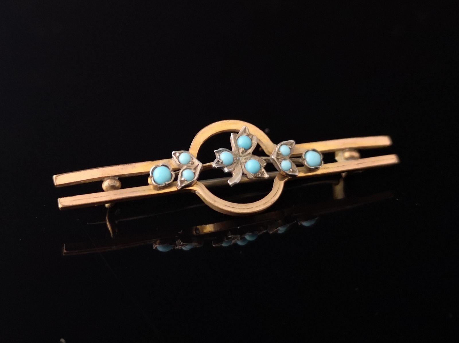Antique Gold Bar Brooch, Edwardian, Leaf