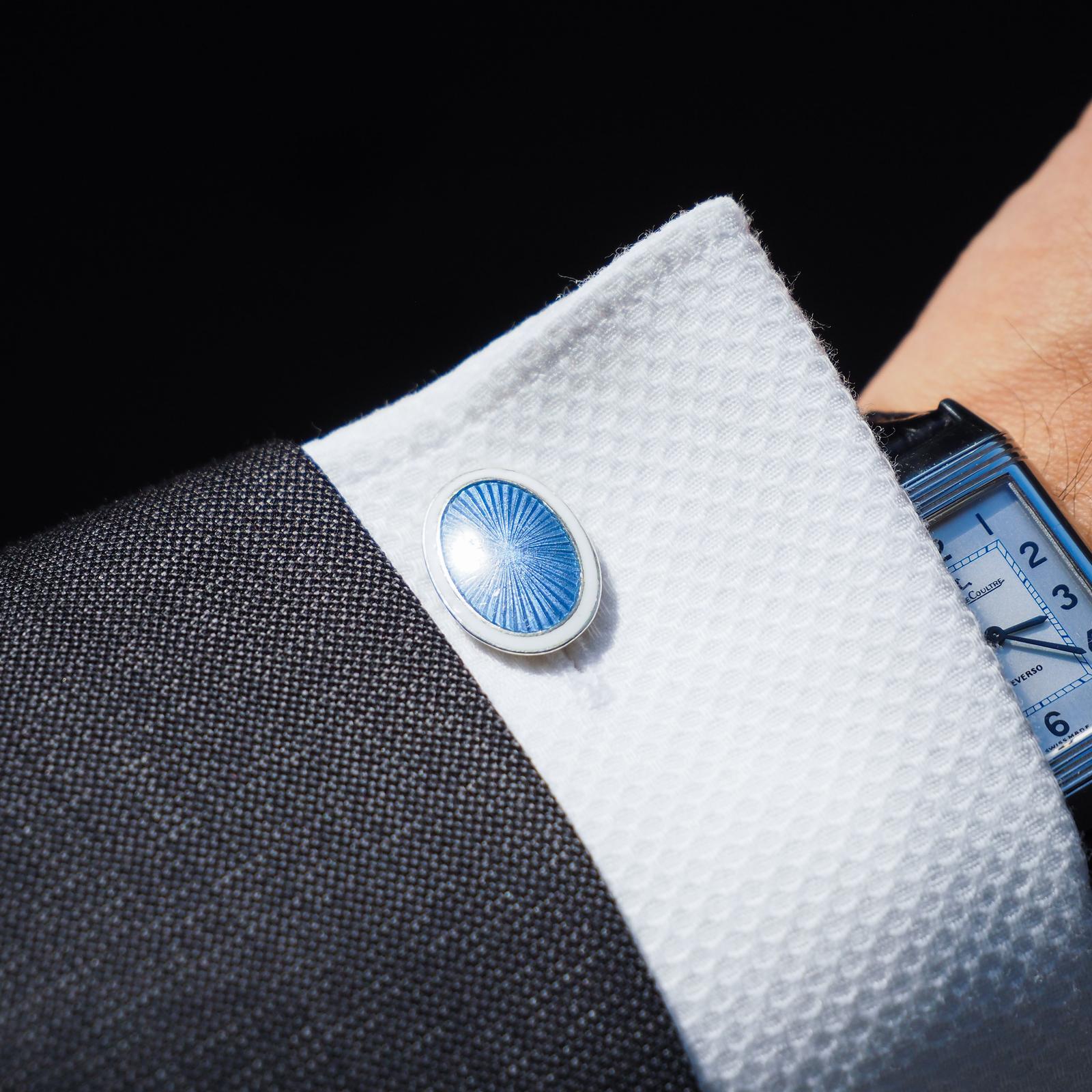 Antique Gold Cufflinks with Blue Guilloche Enamel 9ct Gold & Sterling Silver - Victorian c.1863