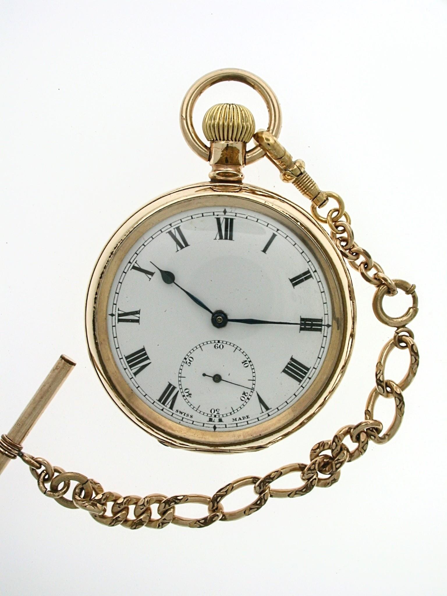 Antique Gold-filled Open Face Pocket Watch  with Gold Filled Chain Swiss 1930 (1 of 8)
