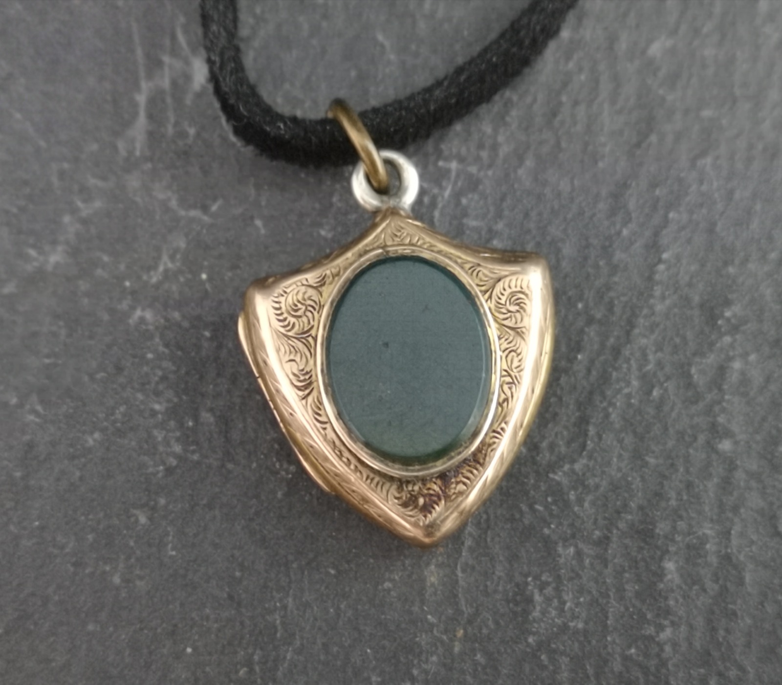 Antique Gold Locket, Shield Fob, Sardonyx and Bloodstone