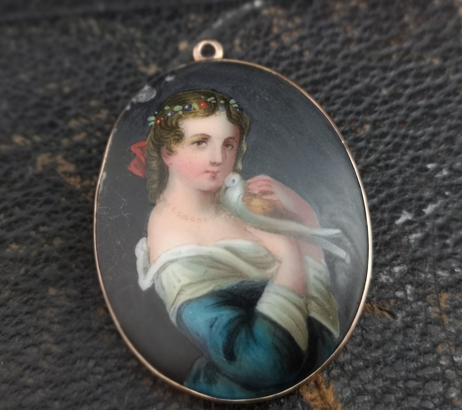 Antique Gold Portrait Brooch, Maiden and Dove, 9ct