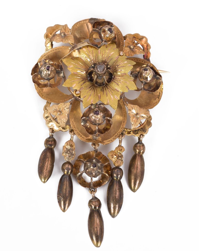 Antique Gold & Rose Cut Diamond Brooch, Late 1800s