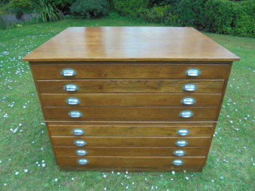 Antique Golden Oak 8 Drawer Plan Chest / Map Chest c.1910