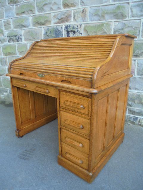 Antique Golden Oak Roll Top Writing Desk c.1900