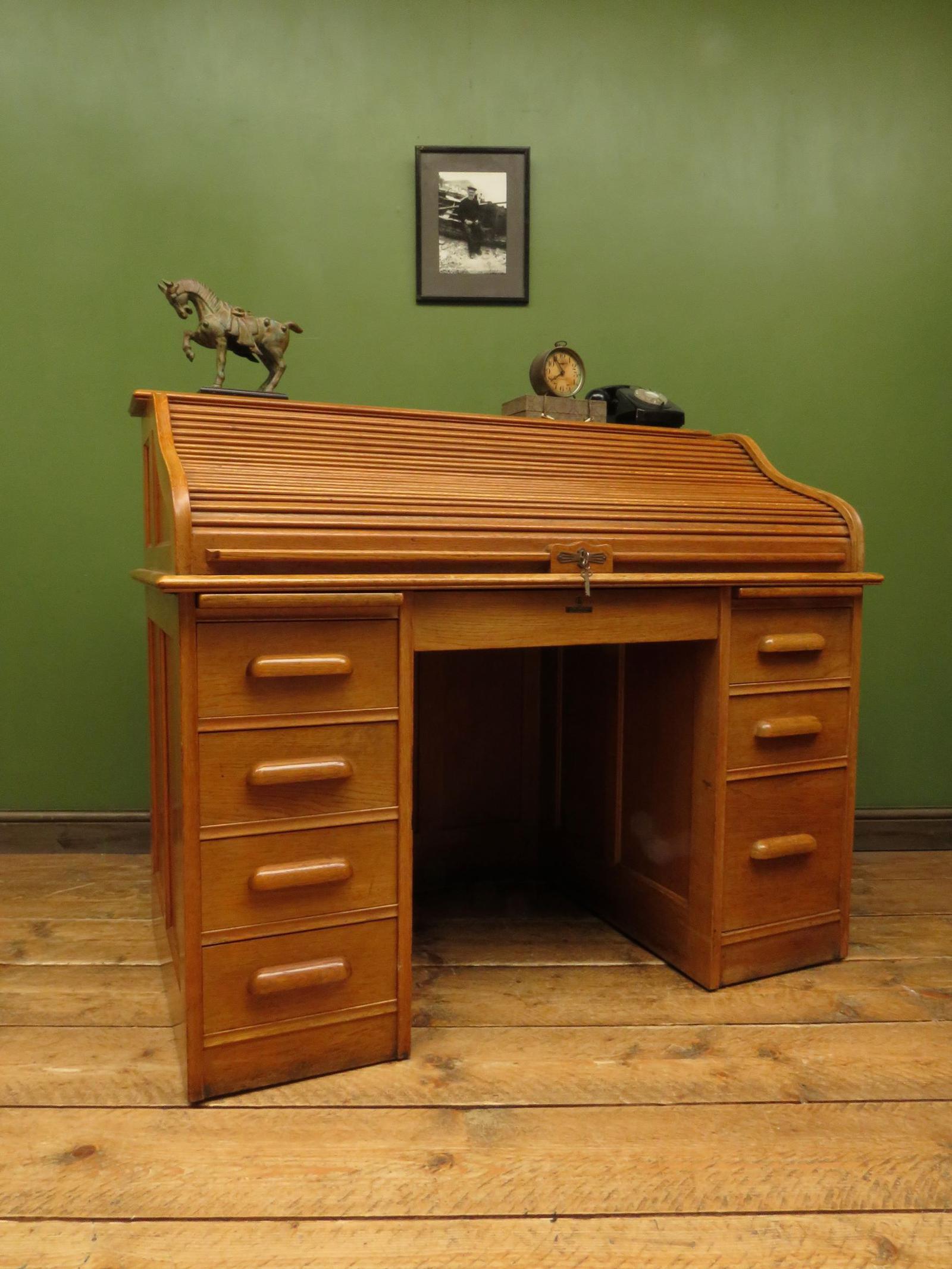 Antique Golden Oak Roll Top Writing Desk, Scandanavian A B Bobin & Mobelfabriken