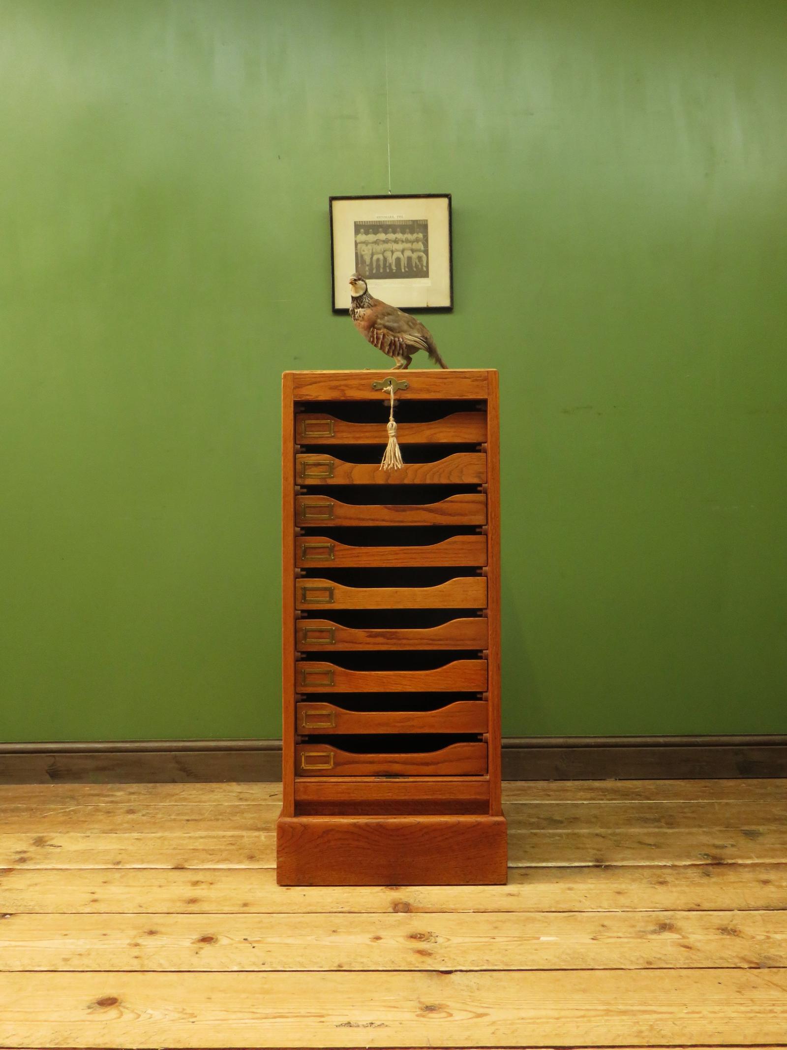 Antique Golden Oak Tambour Stationery Filing Cabinet