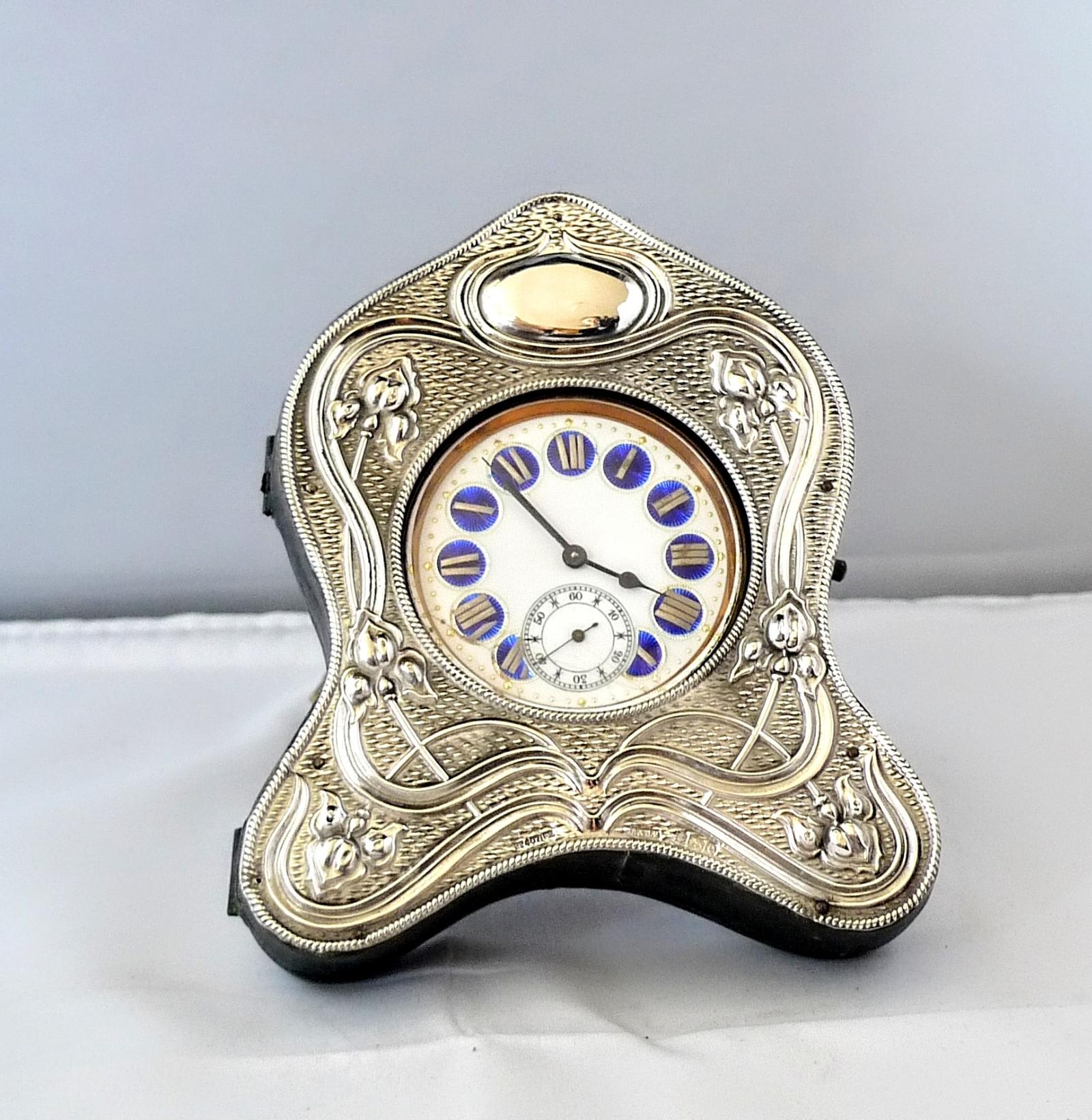Antique Goliath Nickel Pocket Watch in Silver Art Nouveau Case, Hallmarked for Birmingham 1904