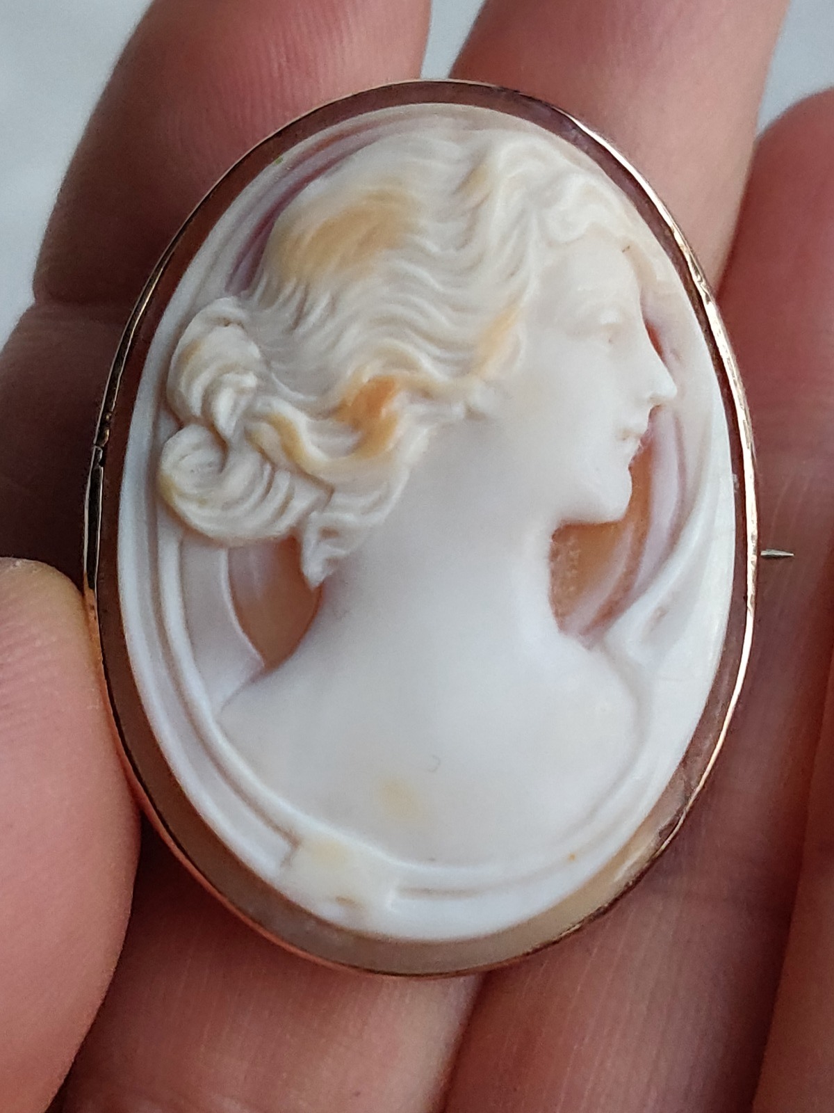 Antique Gorgeous Large Rose Gold 9ct Cameo Shell Brooch
