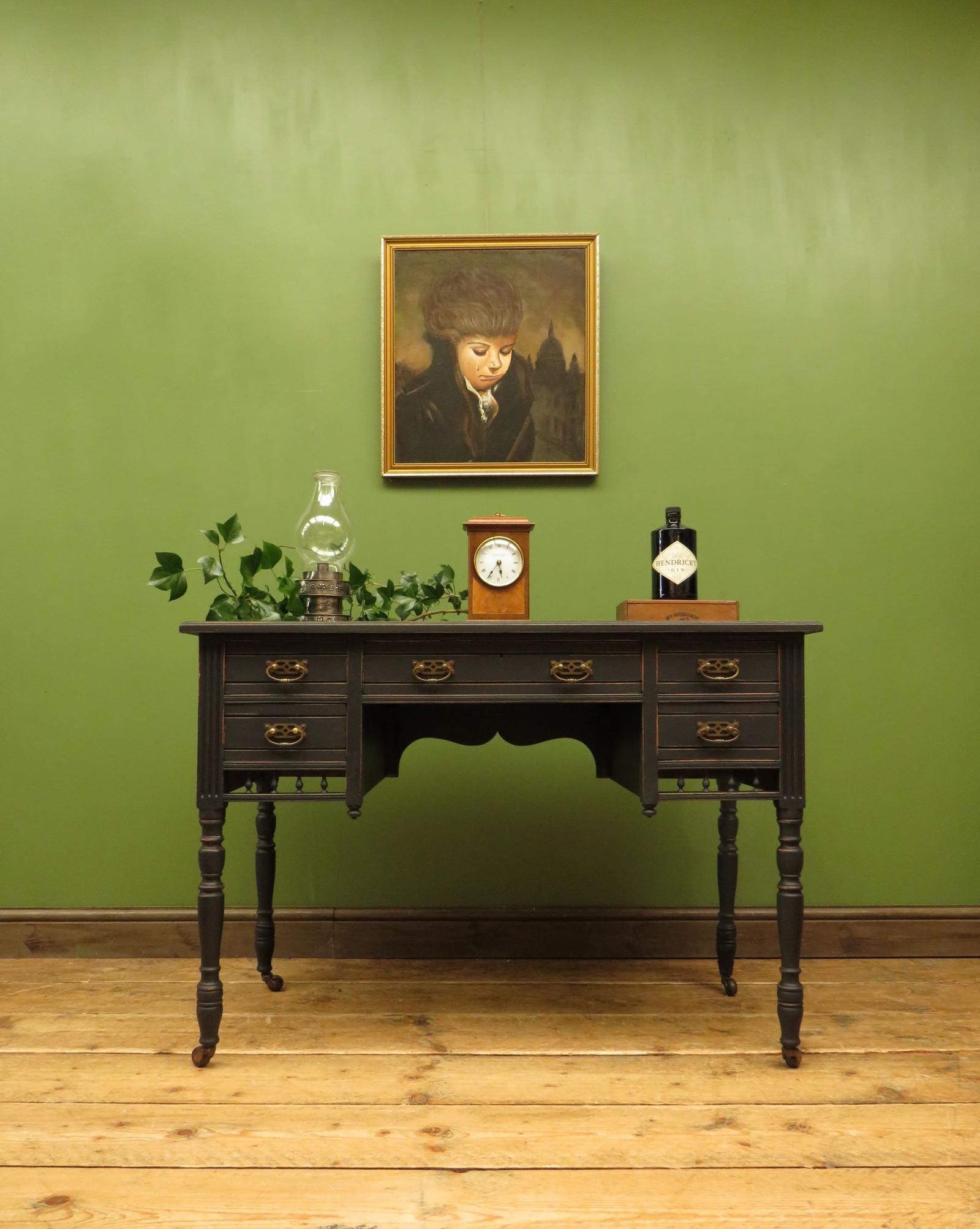 Antique Gothic Black Painted Writing Table Desk with Drawers