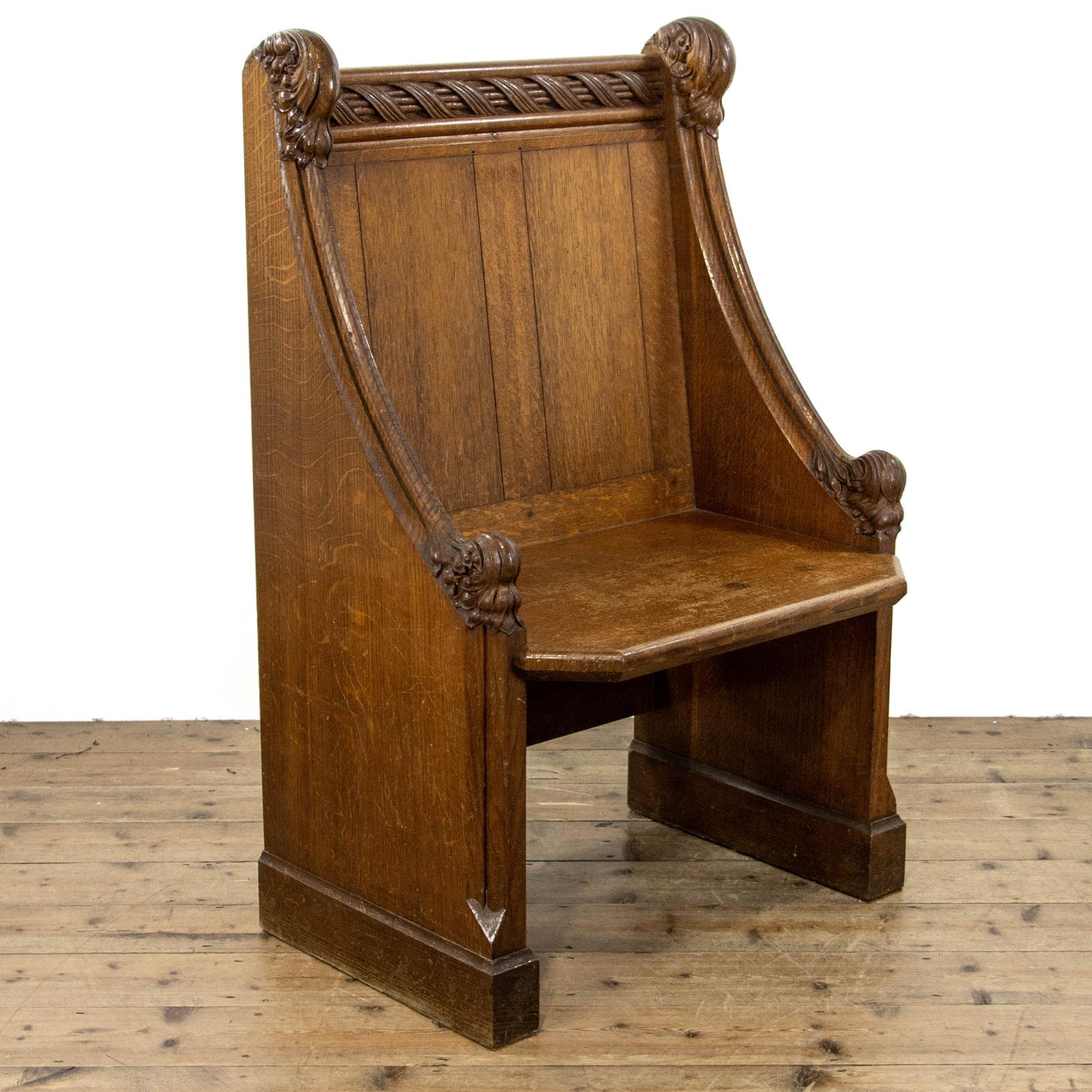 Antique Gothic Oak Pew Seat or Throne (1 of 10)
