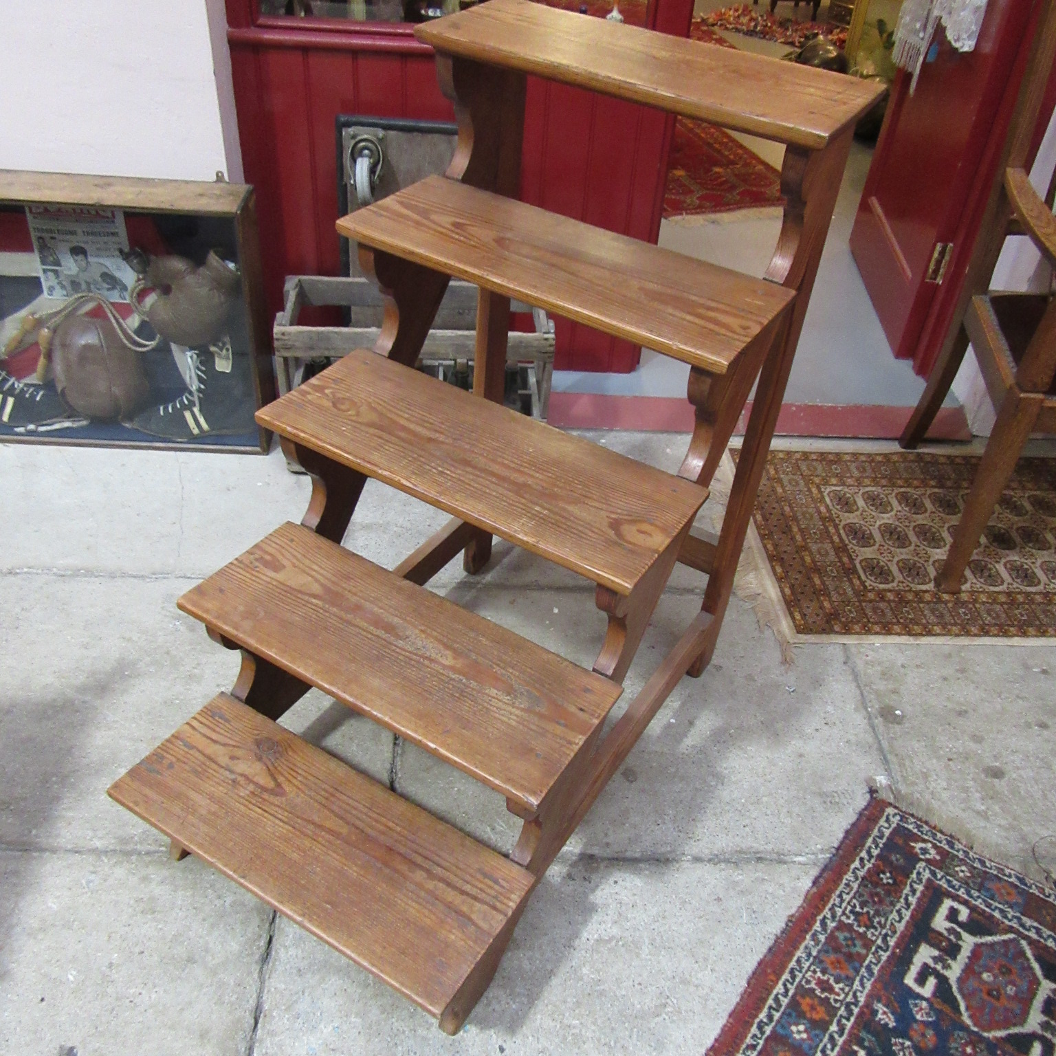 Antique Gothic Style Pine Pine Library Steps C.1900