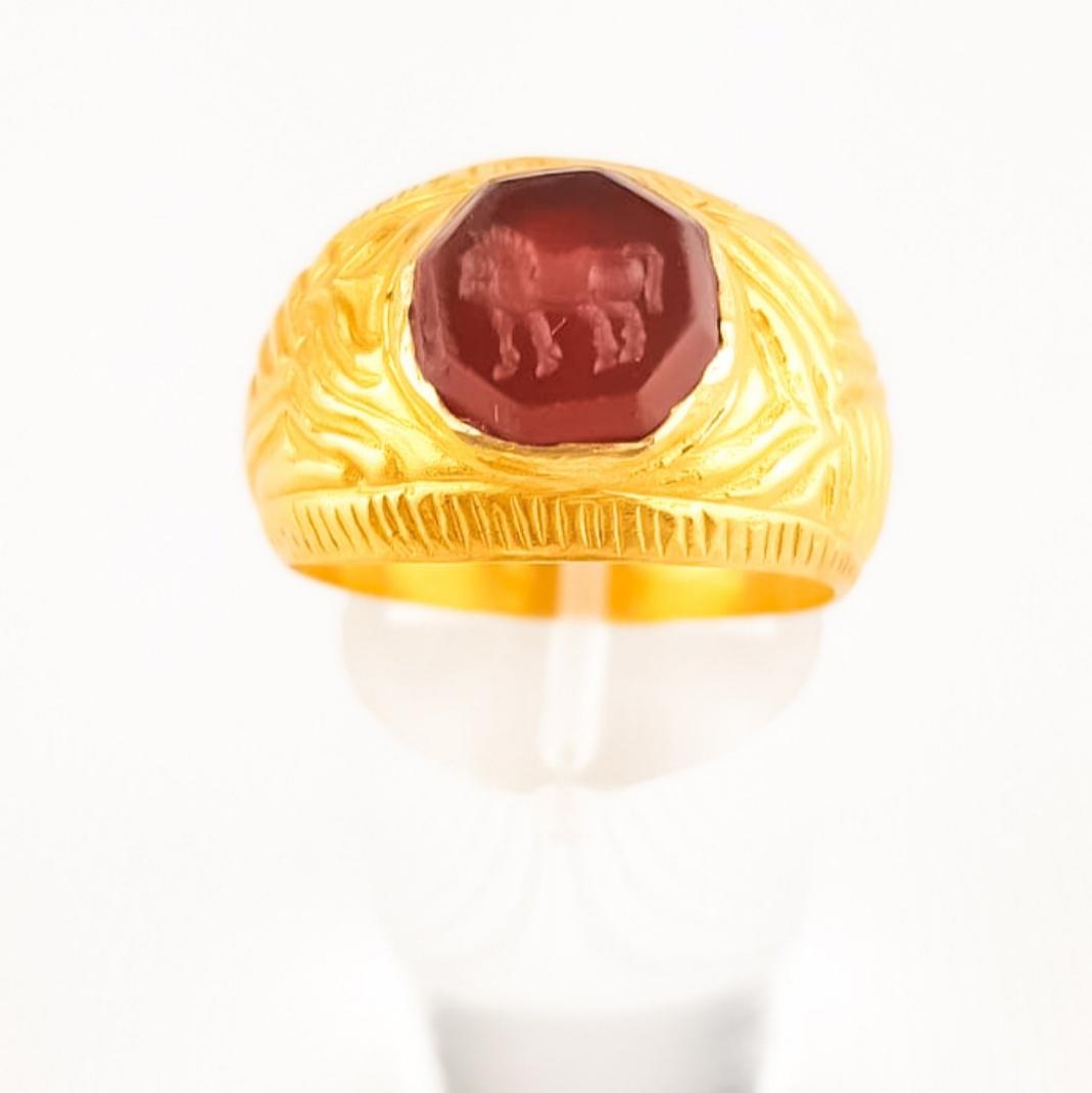 Antique Grand Tour Roman Style Gold Intaglio Seal Ring