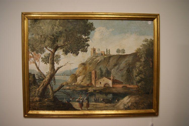 Antique Grass Juice Painting from the 1800s Landscape with Characters