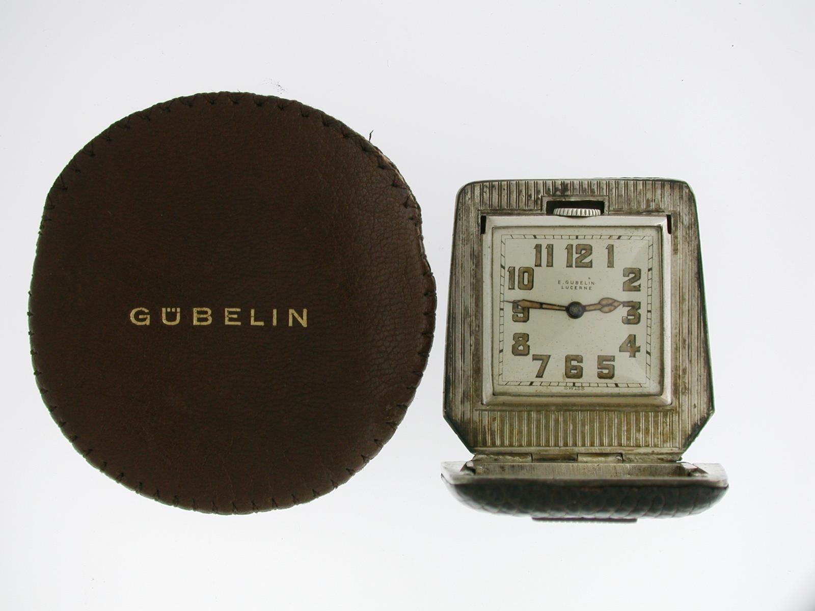 Antique Gubelin Silver 0.935 Eterna Travelling Clock in Original Pouch Swiss 1920