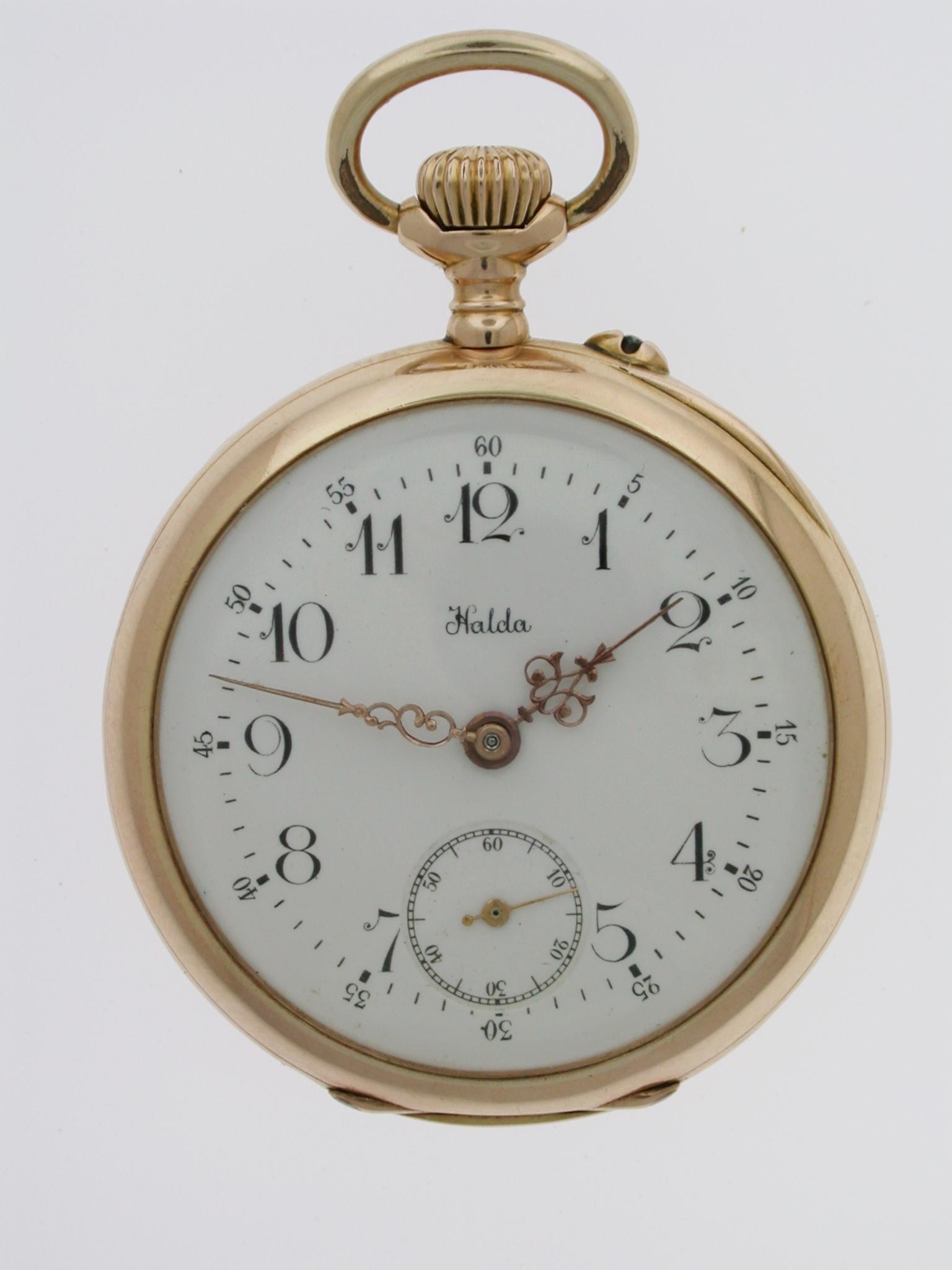 Antique Halda 18 Kt Yellow Gold Swedish Patek Philippe Open Face Pocket Watch 1900