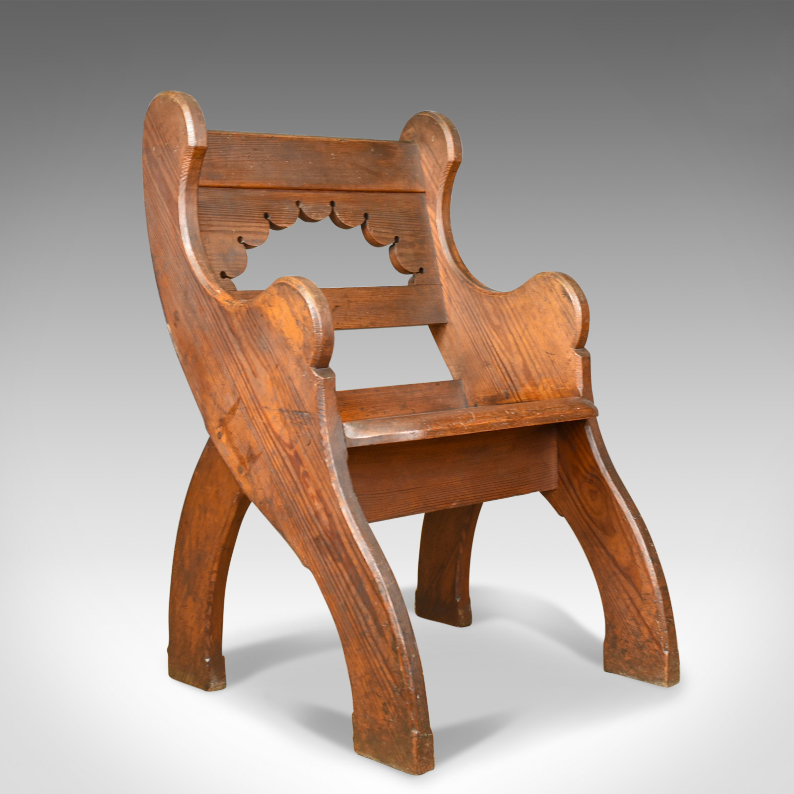 Antique Hall Chair, English, Victorian Pitch Pine Armchair, Ecclesiastical c.1880