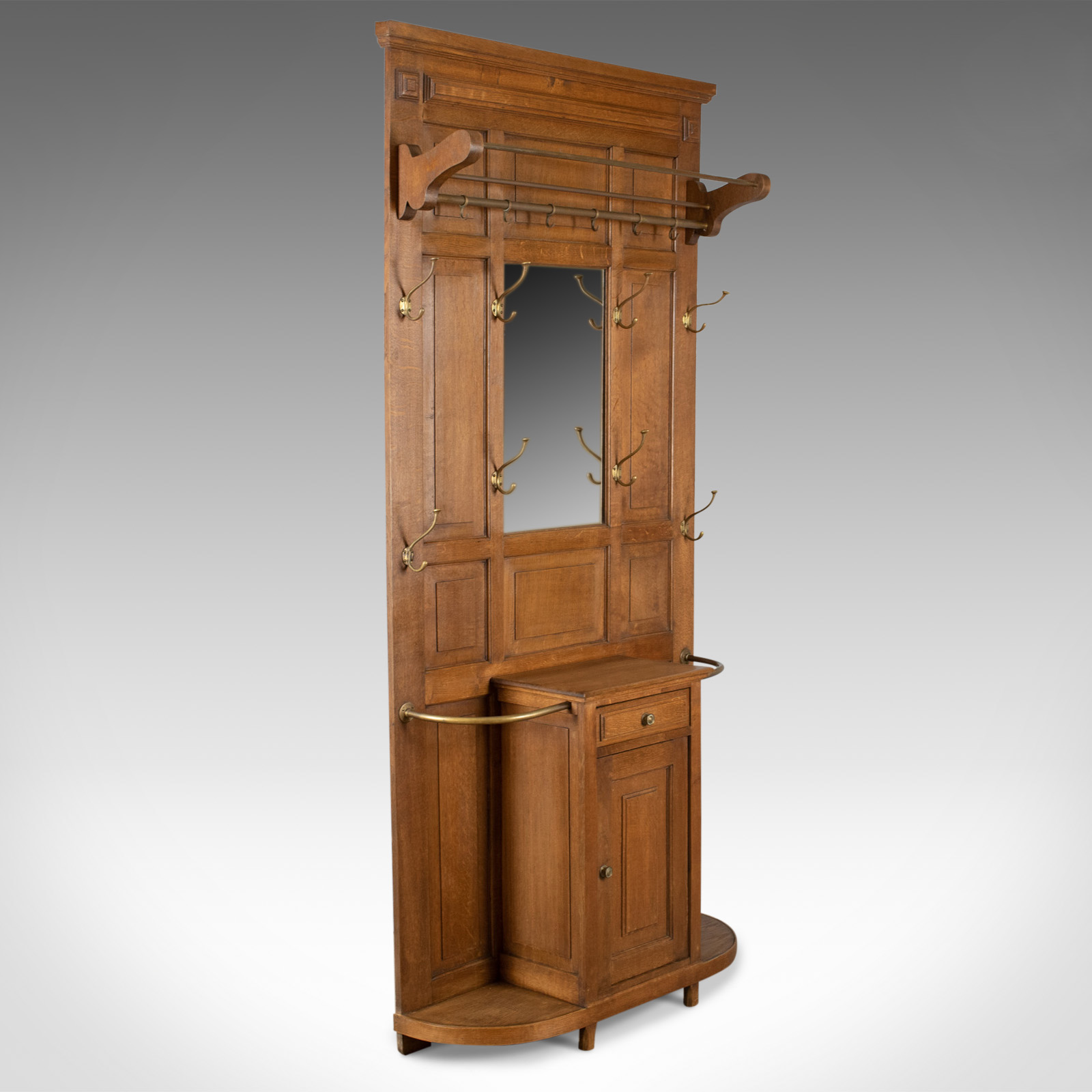 Antique Hall Stand, English, Edwardian, Oak, Coat, Umbrella, Stick, Rack c.1910