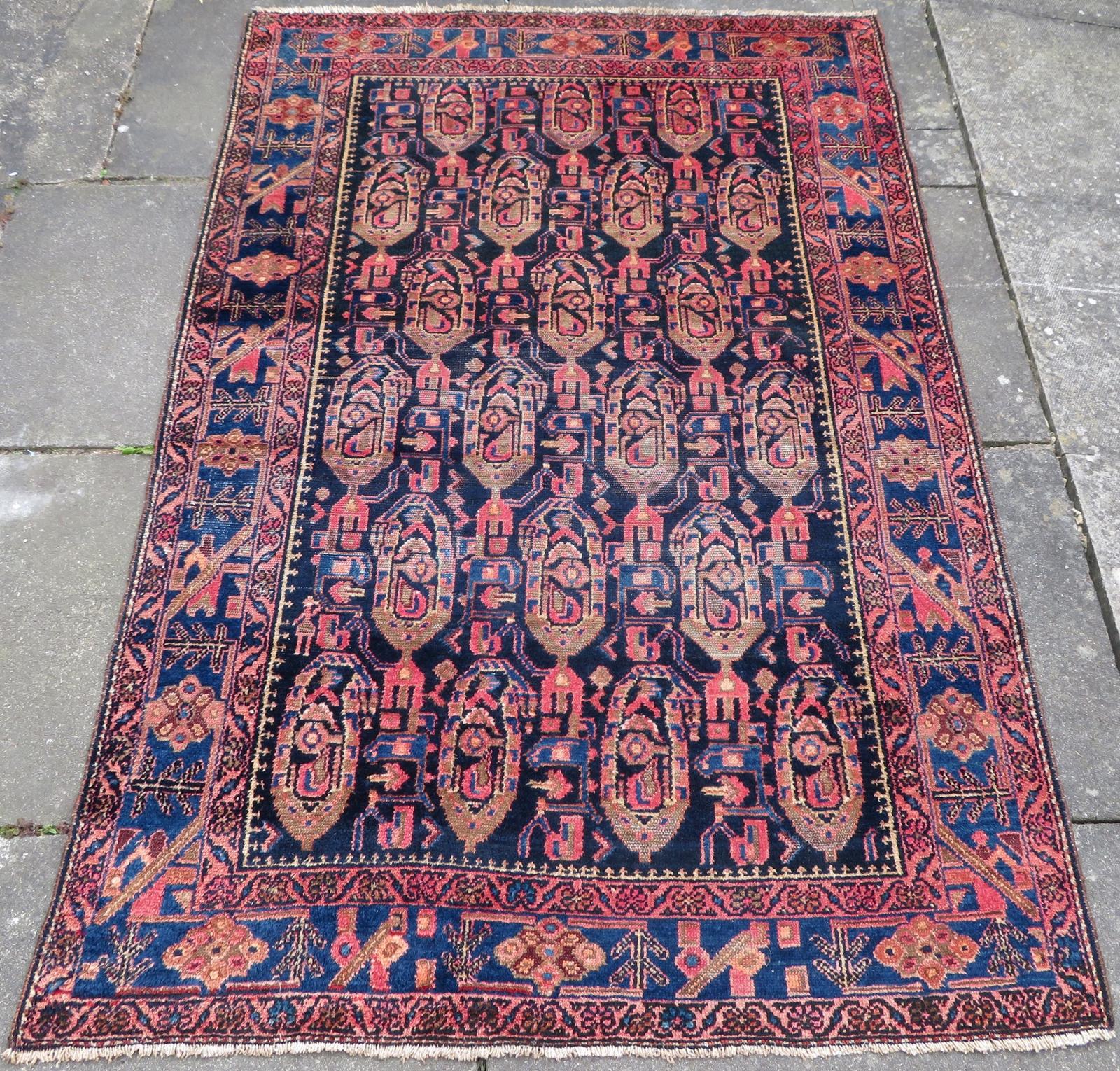 Antique Hamadan Village Rug with Botehs & Lone Tribal Figure
